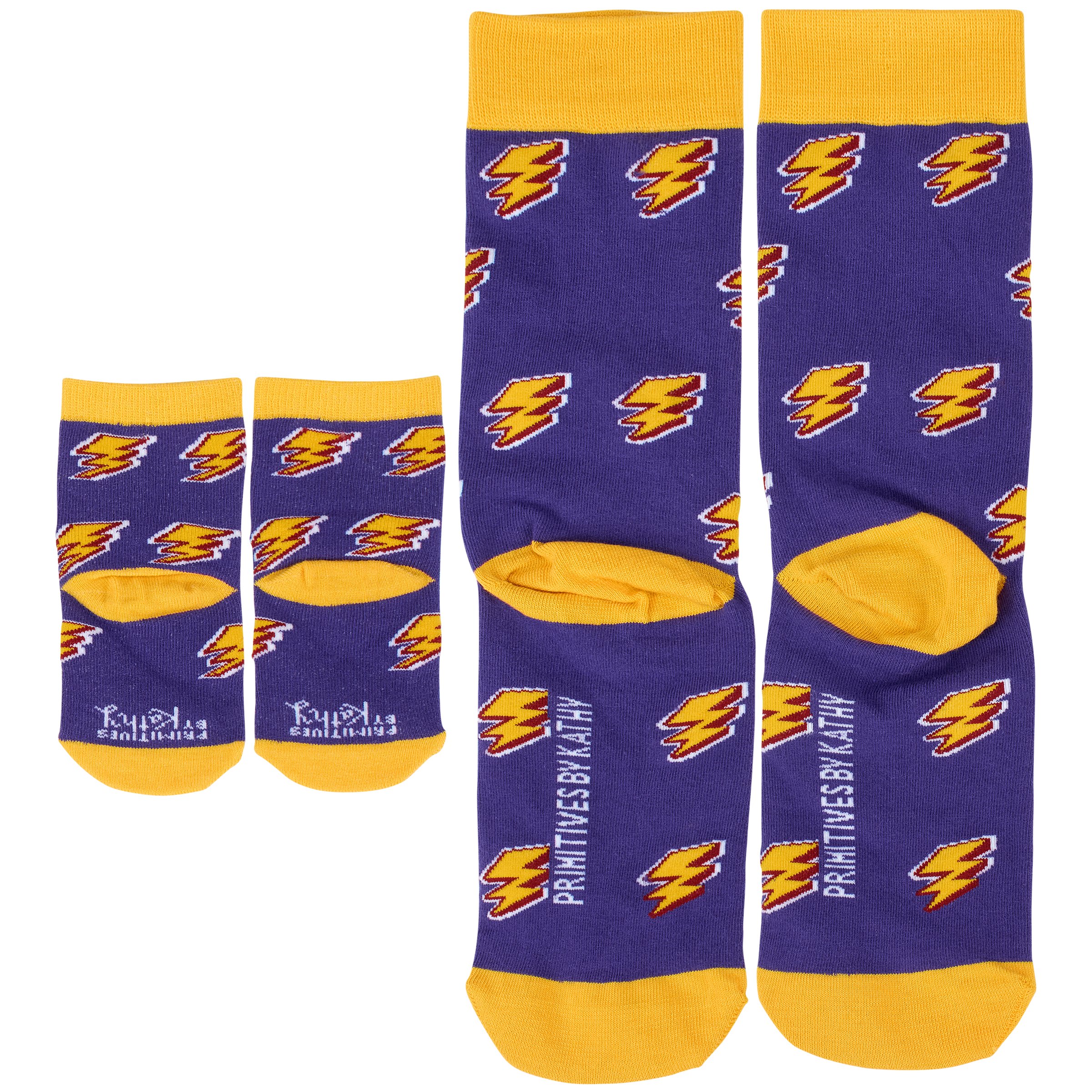 A fun baby & me gift set from our LOL-Made You Smile Collection featuring colorful pairs of matching socks that include one adult pair and one baby pair to create fun family moments. Each pair displays playful hand illustrated superhero designs with fun dad inspired sentiments that read "Super Dad" on the adult socks and "Super Baby" on the baby socks. This giftable sock set is made with a cotton, nylon, and spandex blend for a one size fits most design for the adult pair and baby socks that fit 0-12 months. Our Super Dad baby & me sock set comes packaged together with a decorative header card making it great for gifting as well as a clear plastic hanger for easy rack display. A cute baby & me matching sock set perfect to give as a family gift for baby showers or Father's Day.