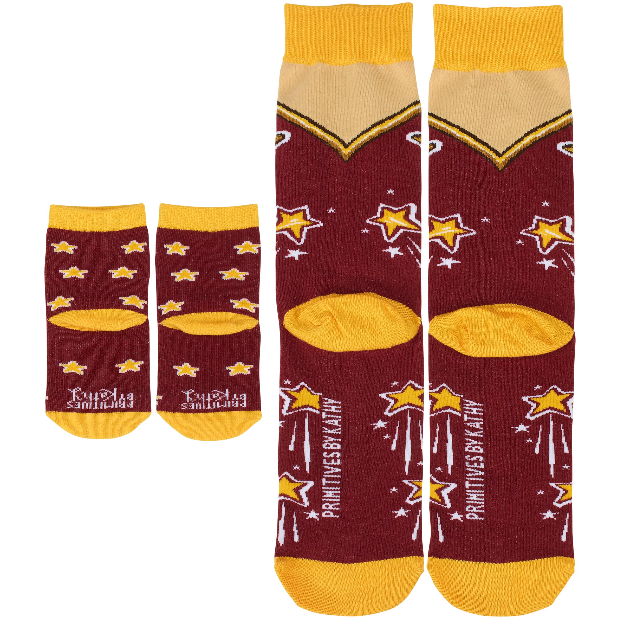 A fun baby & me gift set from our LOL-Made You Smile Collection featuring colorful pairs of matching socks that include one adult pair and one baby pair to create fun family moments. Each pair displays playful hand illustrated superhero designs with fun mom inspired sentiments that read "Super Mom" on the adult socks and "Super Baby" on the baby socks. This giftable sock set is made with a cotton, nylon, and spandex blend for a one size fits most design for the adult pair and baby socks that fit 0-12 months. Our Super Mom baby & me sock set comes packaged together with a decorative header card making it great for gifting as well as a clear plastic hanger for easy rack display. A cute baby & me matching sock set perfect to give as a family gift for baby showers or Mother's Day.