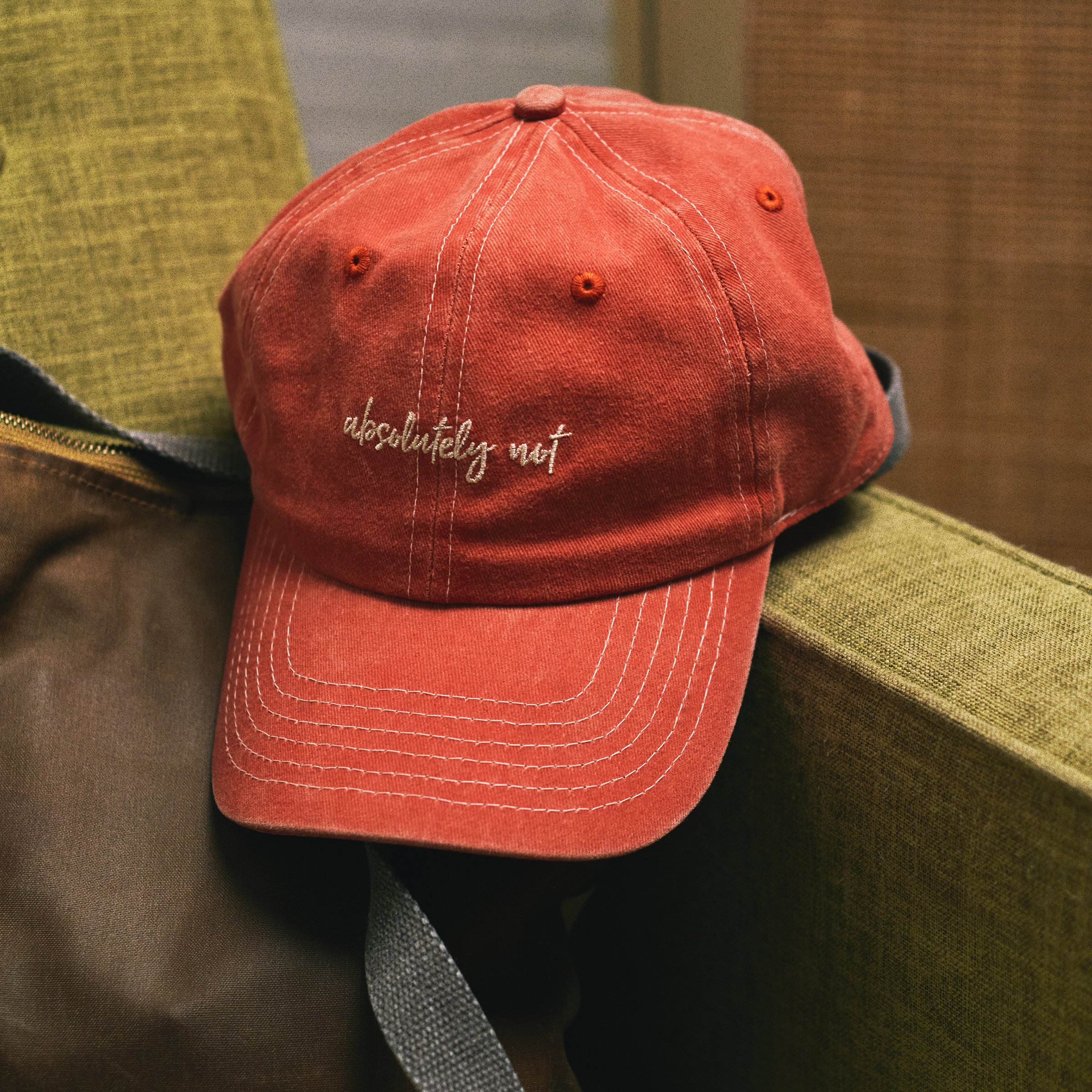 You don't even have to ask, just read the hat. This vibrant baseball cap displays an honest sentiment that reads "Absolutely Not" in a hand written style. Stylish design is fully embroidered on stonewashed cotton for a naturally worn look. Questionables baseball caps are one size fits most with an adjustable buckle closure to create the perfect fit. Hand wash only. Our Absolutely Not baseball cap demands attention making it perfect for everyday expression.