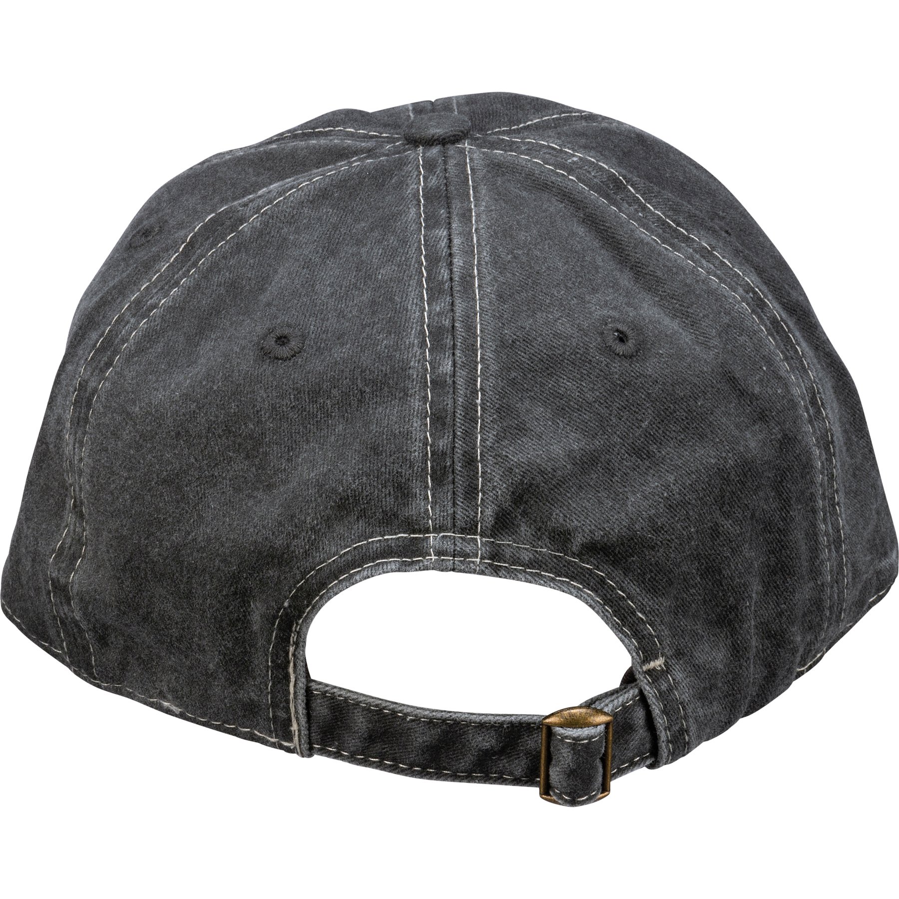 A cotton baseball cap with an adjustable brass closure on the back. Features "But First, Coffee" sentiment embroidered in cream onto charcoal base. One size fits most. Hand-wash only.