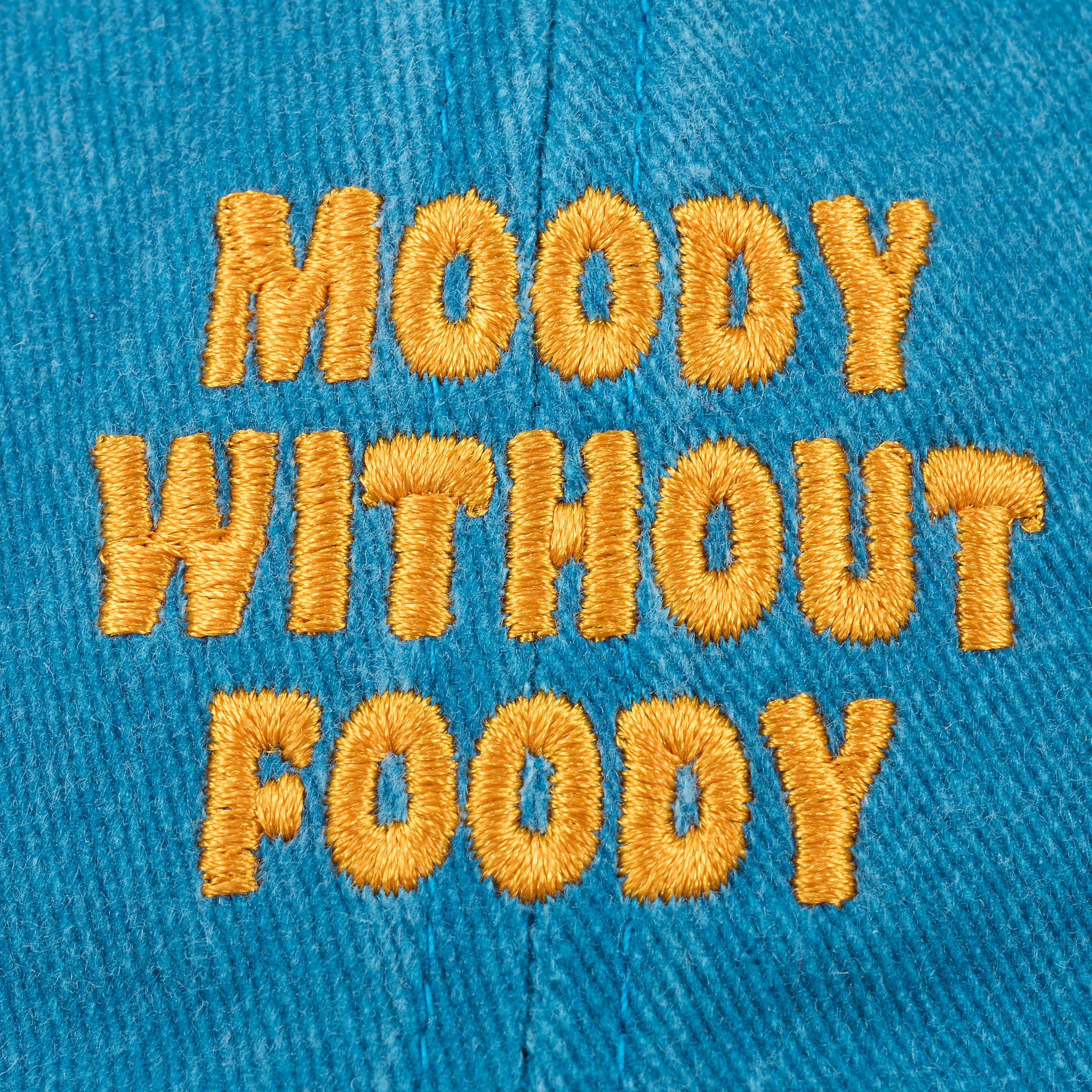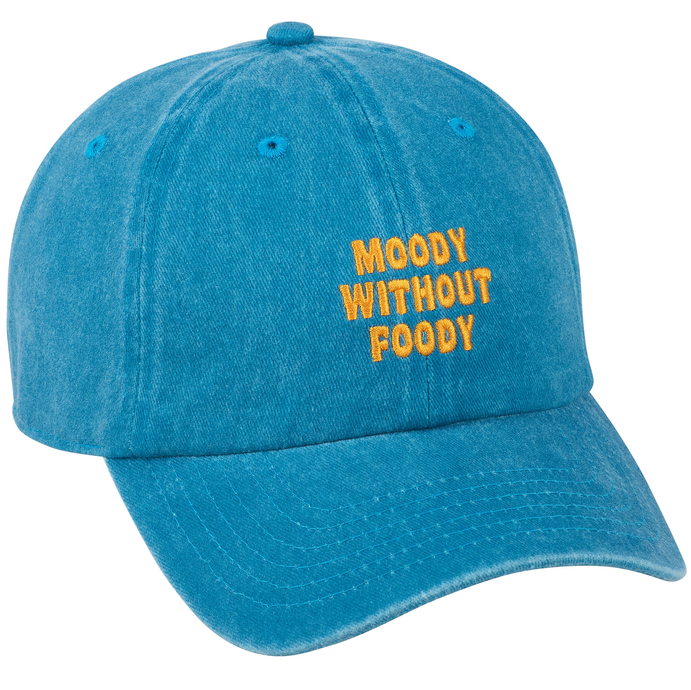 Give fair warning that snacks must be available at all times when wearing this blue baseball displaying a fun honest sentiment that reads "Moody Without Foody." Moody sentiment is fully embroidered on stonewashed cotton that gives this casual everyday hat a naturally worn look. Questionables baseball caps are one size fits most with an adjustable metal buckle to create the perfect fit. Hand wash only. Our Moody Without Foody baseball cap is perfect for everyday expression and letting everyone know a little, or a lot, about yourself.