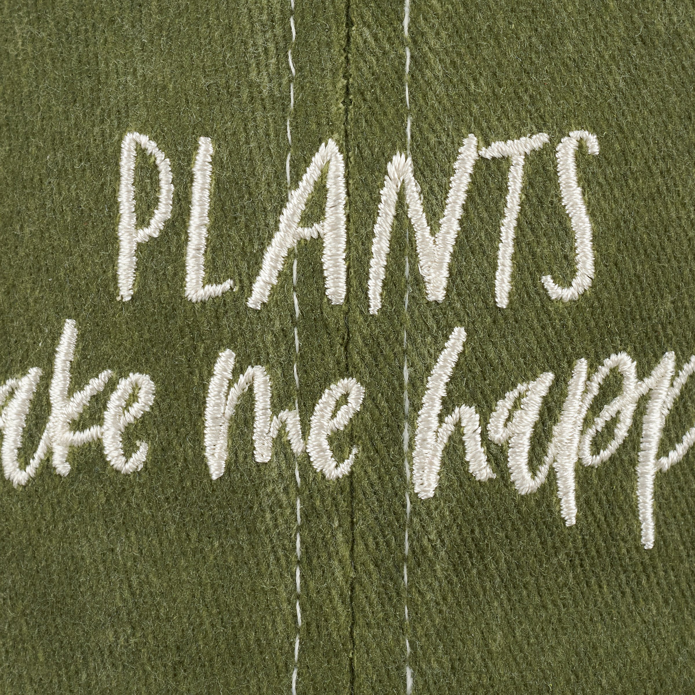 A stonewashed green baseball cap from our Plant Parent Gift Collection displaying a fun plant themed sentiment in a handwritten style that reads "Plants Make Me Happy." This plant parent hat features a fully embroidered design for added detail. Our Plants Make Me Happy baseball cap is one size fits most with an adjustable metal buckle to create the perfect fit. Hand wash only. A fun gift for plant parents perfect for everyday style while showing off a love for house plants.