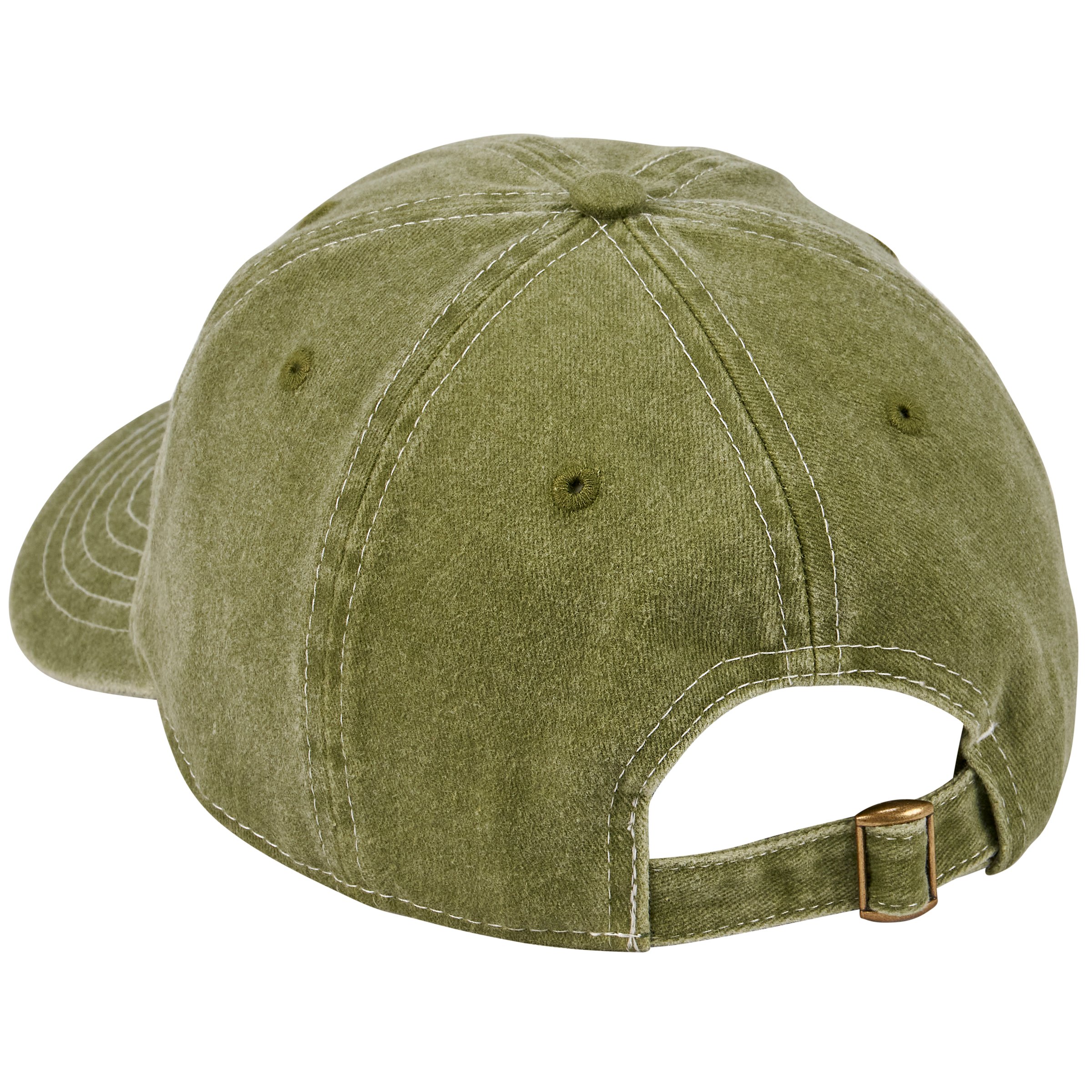 A stonewashed green baseball cap from our Lake & Cabin Collection displaying a fun bigfoot inspired sentiment in a box sign style that reads "I'd Rather Be Squatchin'." Bigfoot hat features fully embroidered sentiment for added detail. Our Squatchin' baseball cap is one size fits most with an adjustable metal buckle to create the perfect fit. Hand wash only. A fun bigfoot-themed gift perfect for an everyday accessory.