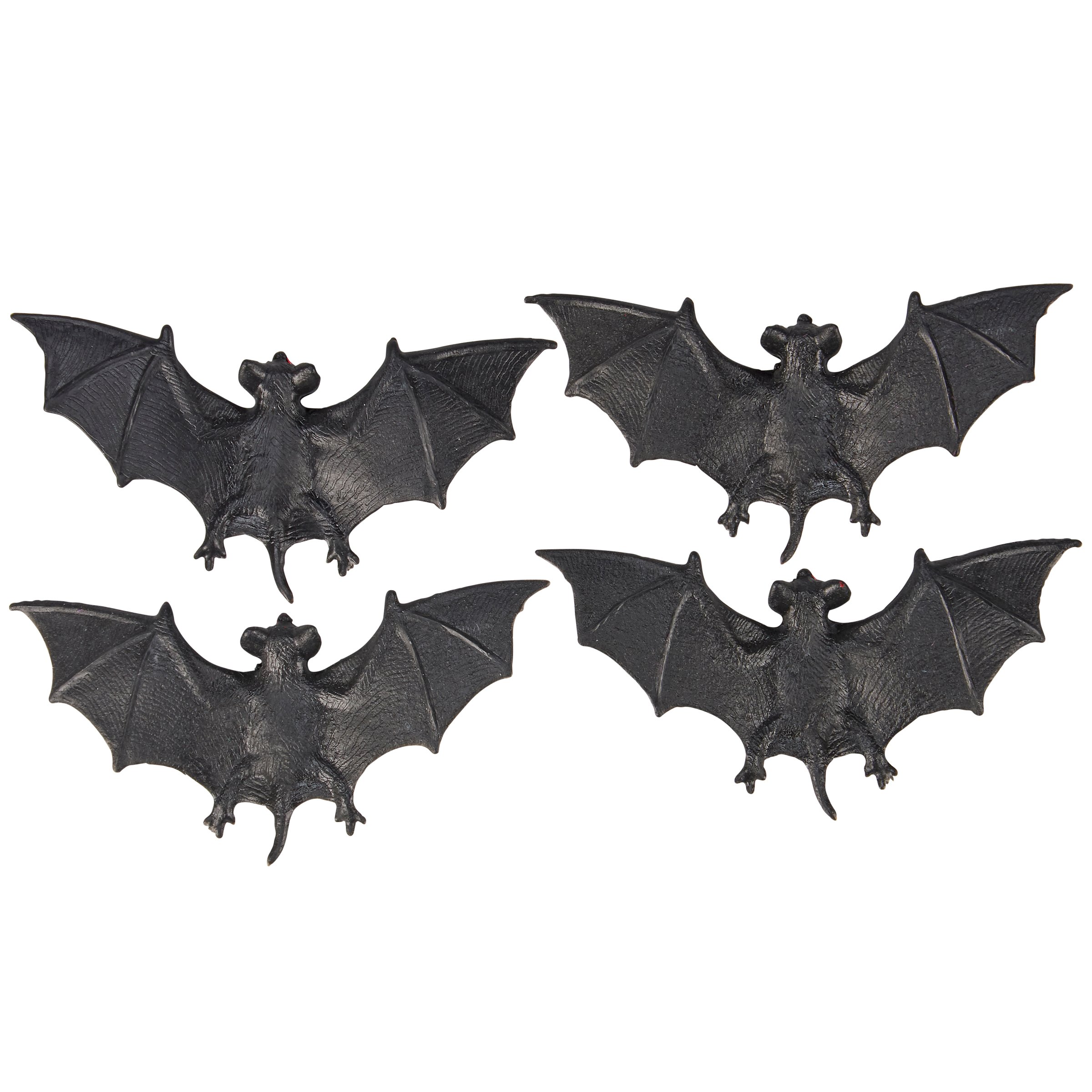 A set of 4 decorative bats from our Halloween Collection featuring textured details throughout and red accents for the eyes. Decorative bat set comes packaged in poly bag and header card with hole for easy rack display. A fun set of seasonal home accents perfect for Halloween displays.