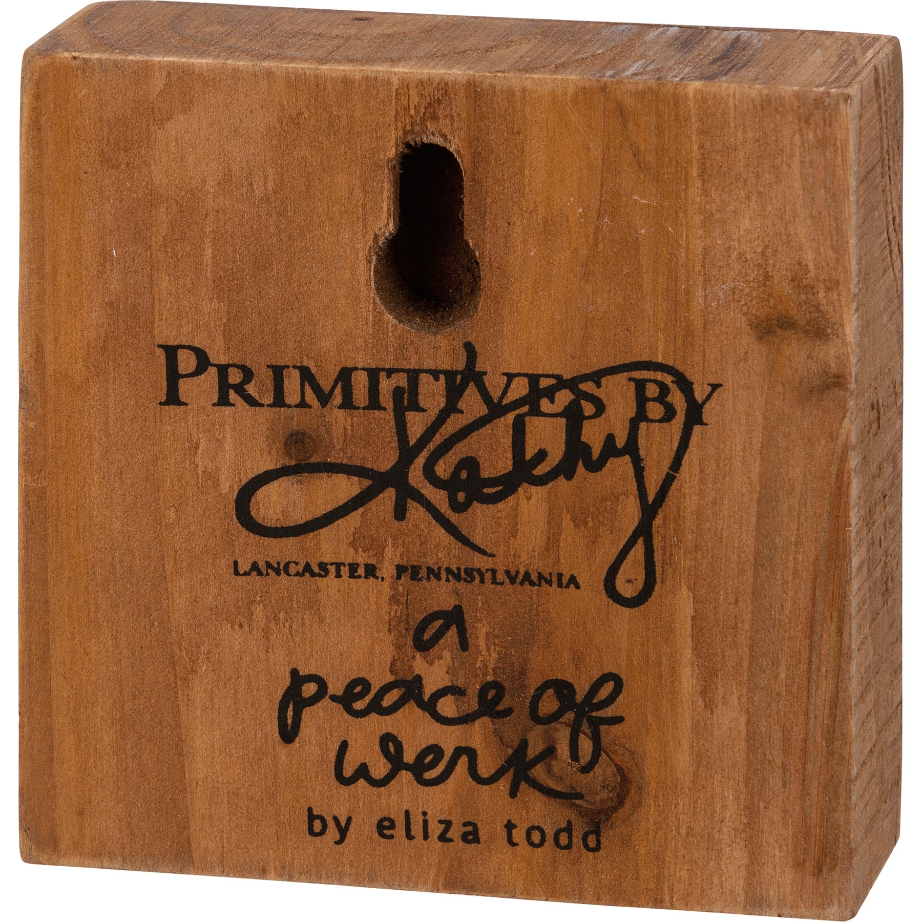 A wooden block sign featuring a vibrant color palette with whimsical floral designs and inspirational words. Sentiment reads "A Kind Heart Is A Brave Heart". Wooden wall art is easy to hang via predrilled keyhole slot or can free-stand alone. Features natural wood sides.
