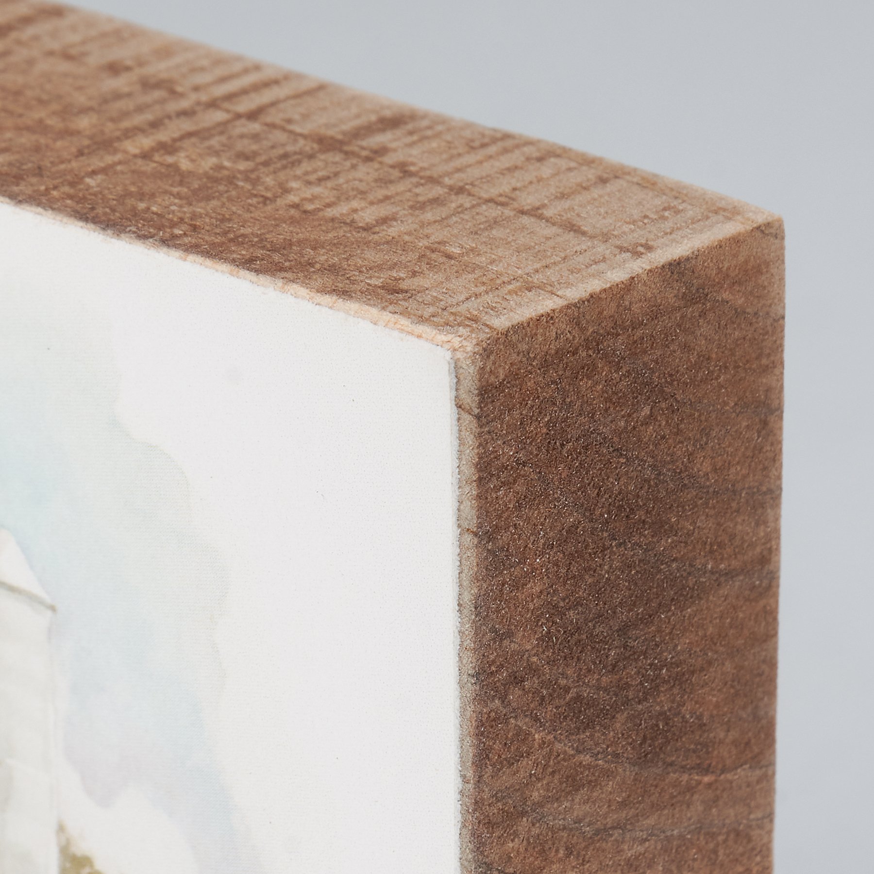 A charming wooden block sign from our Farmhouse Collection displaying a quaint, hand painted barnyard scene in a delicate watercolor style. Sides and back feature coordinating natural wood. Our Barnyard Roosters block sign is easy to hang via predrilled keyhole slot or can free-stand alone. A rustic everyday home accent with a variety of display options.