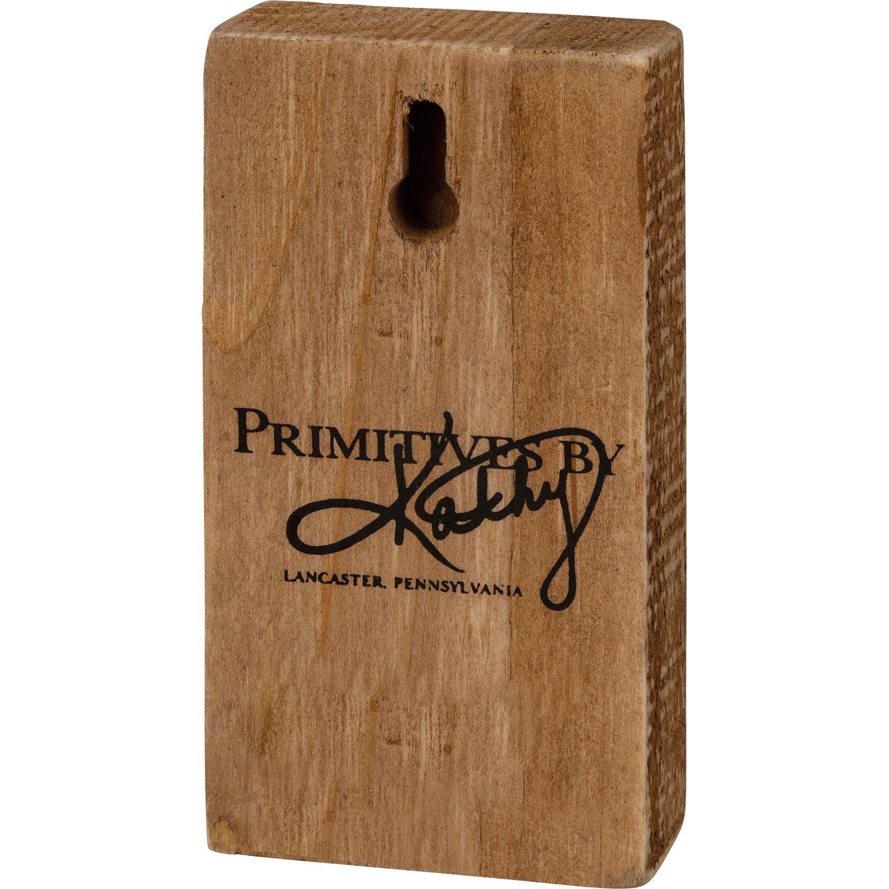 A wooden block sign depicting a snowy evergreen tree with cardinals perched in its branches. design is replicated from original artwork painted onto burlap canvas, giving the art a unique depth and texture. Easy to hang via predrilled keyhole slot or can free-stand alone.