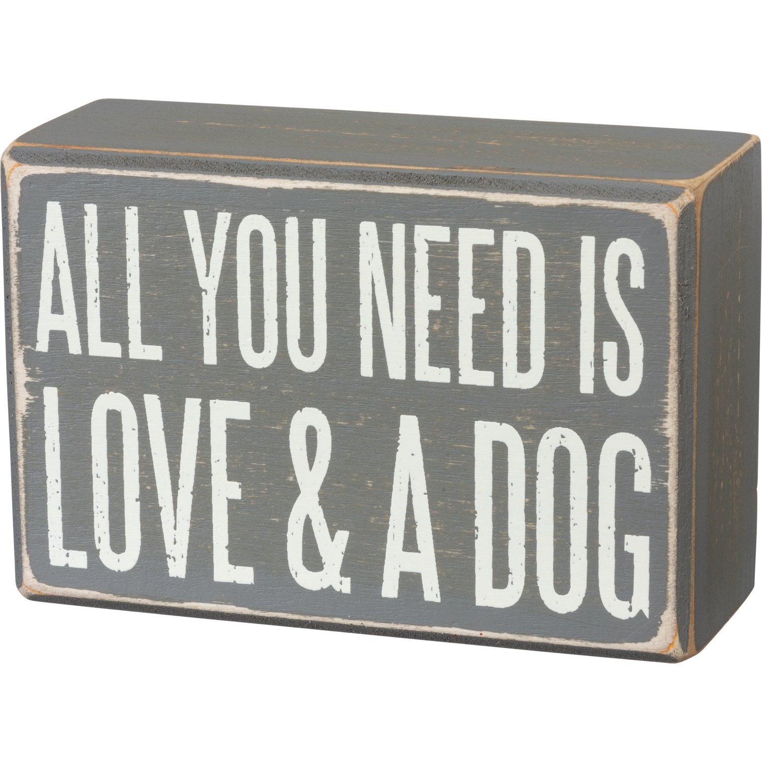 A perfectly giftable set including a box sign with "All You Need Is Love & A Dog" sentiment with a pair of socks with complementing paw print designs. Socks are cotton, nylon and spandex and are machine-washable. One size fits most. Box sign is easy to hang or can free-stand alone. Socks come neatly rolled inside box sign and secured with tied cotton tape ribbon.
