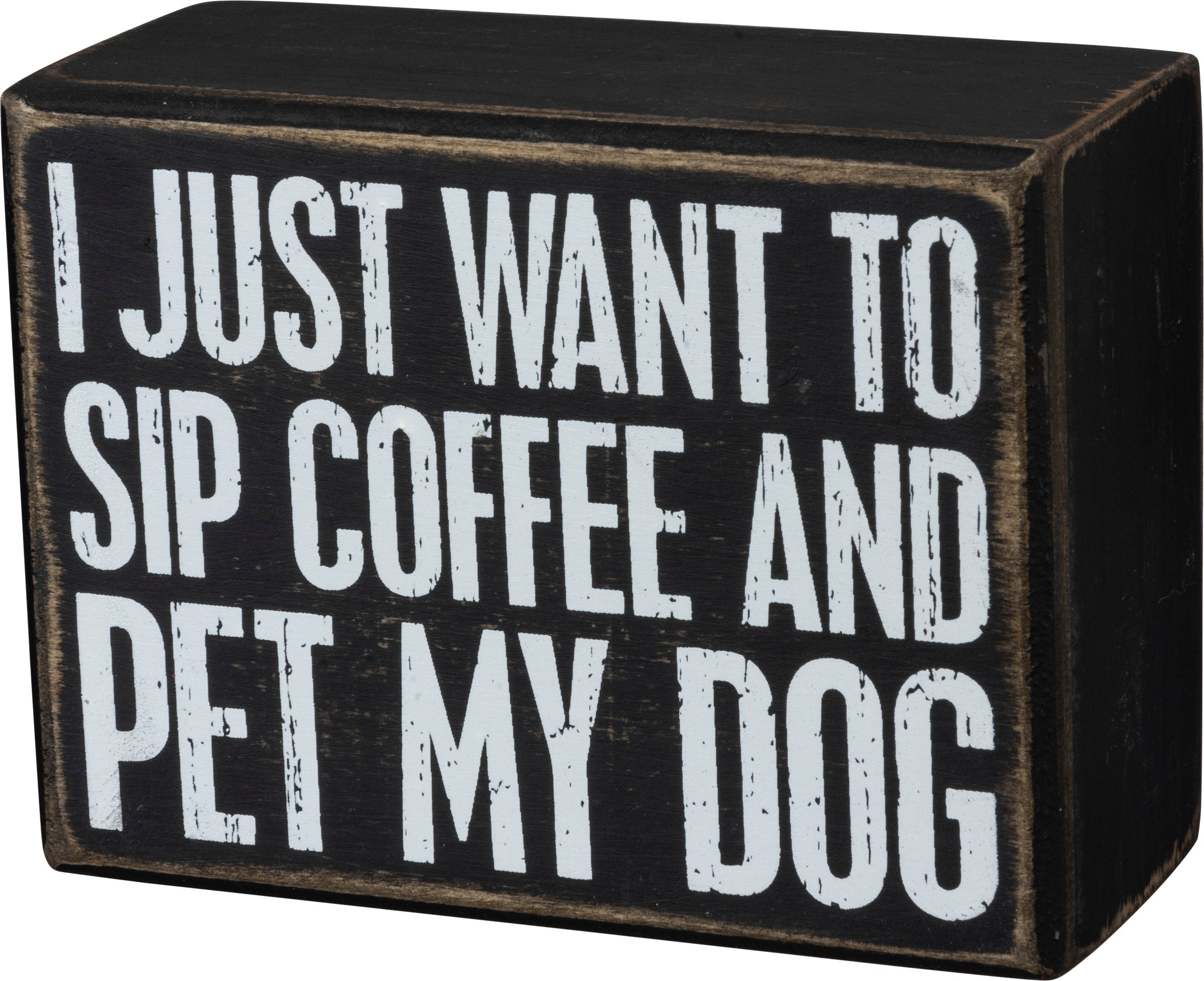 Just Want To Sip Coffee And Pet My Dog Box Sign