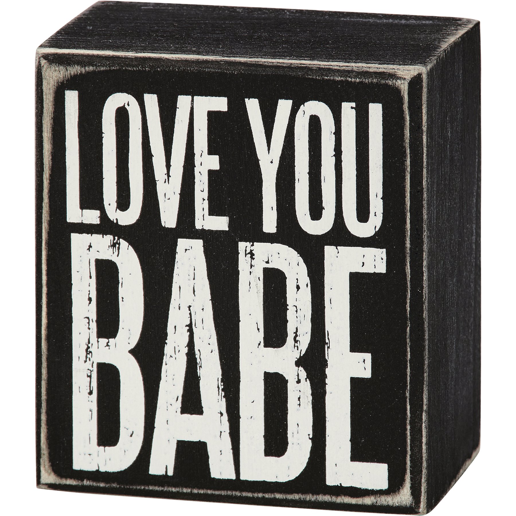 A classic black and white wooden box sign from our Box Sign Collection features a distressed "Love You Babe" sentiment. The Love You Babe sign is easy to hang or can free-stand alone.
