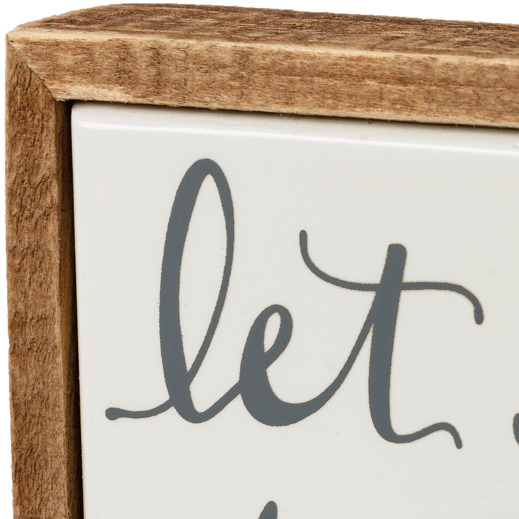 A wooden box sign mini from our festive Christmas Collection featuring a hand lettered "Let it Snow" sentiment and tile-like finish. Our Let It Snow sign is easy to hang or can free-stand alone.