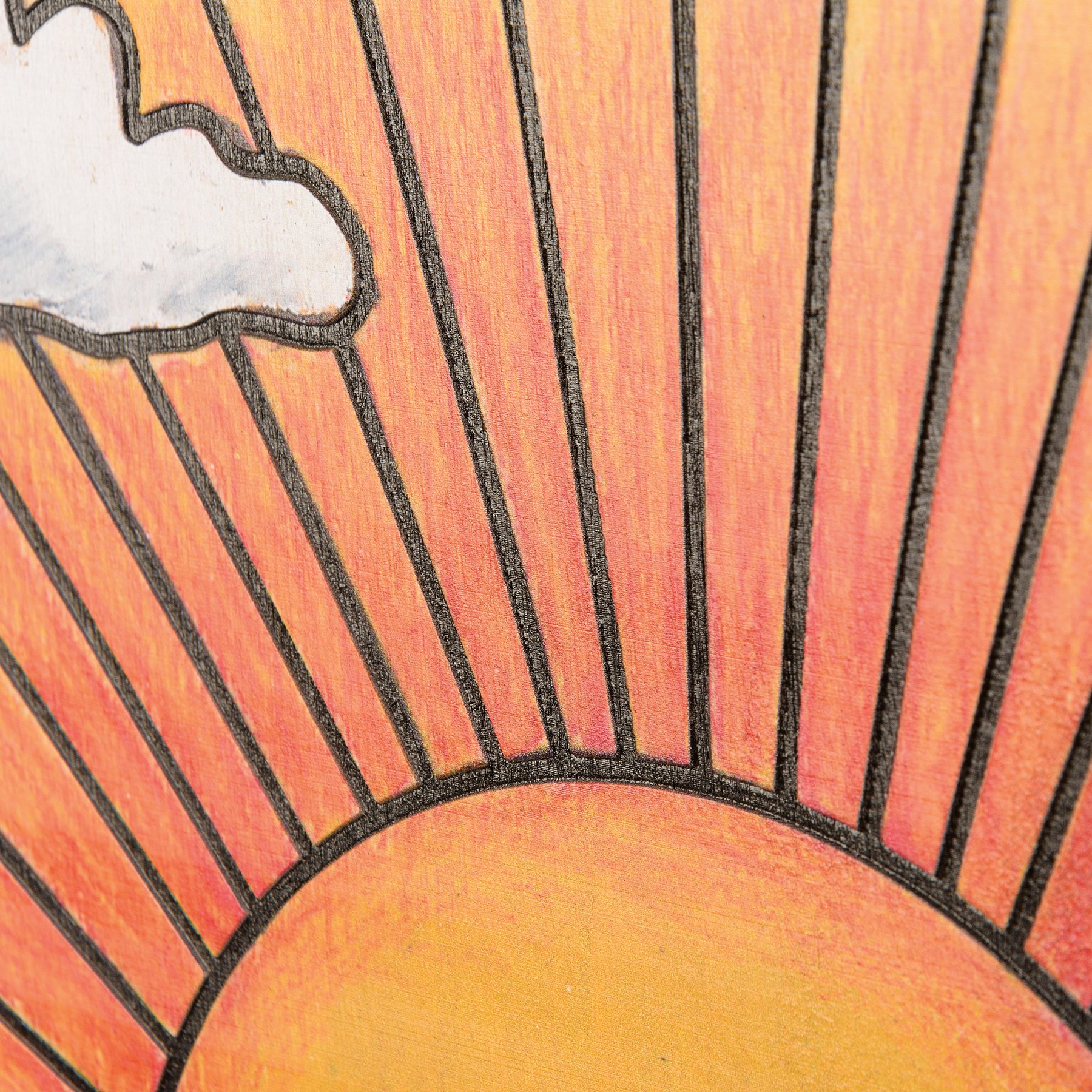 A wooden box sign from our Love Gift Theme featuring "You Are My Sun My Moon & All My Stars" sentiment, colorful woodburned designs, and natural wood sides for added interest. Our My Moon & My Stars sign is easy to hang or can free-stand alone.