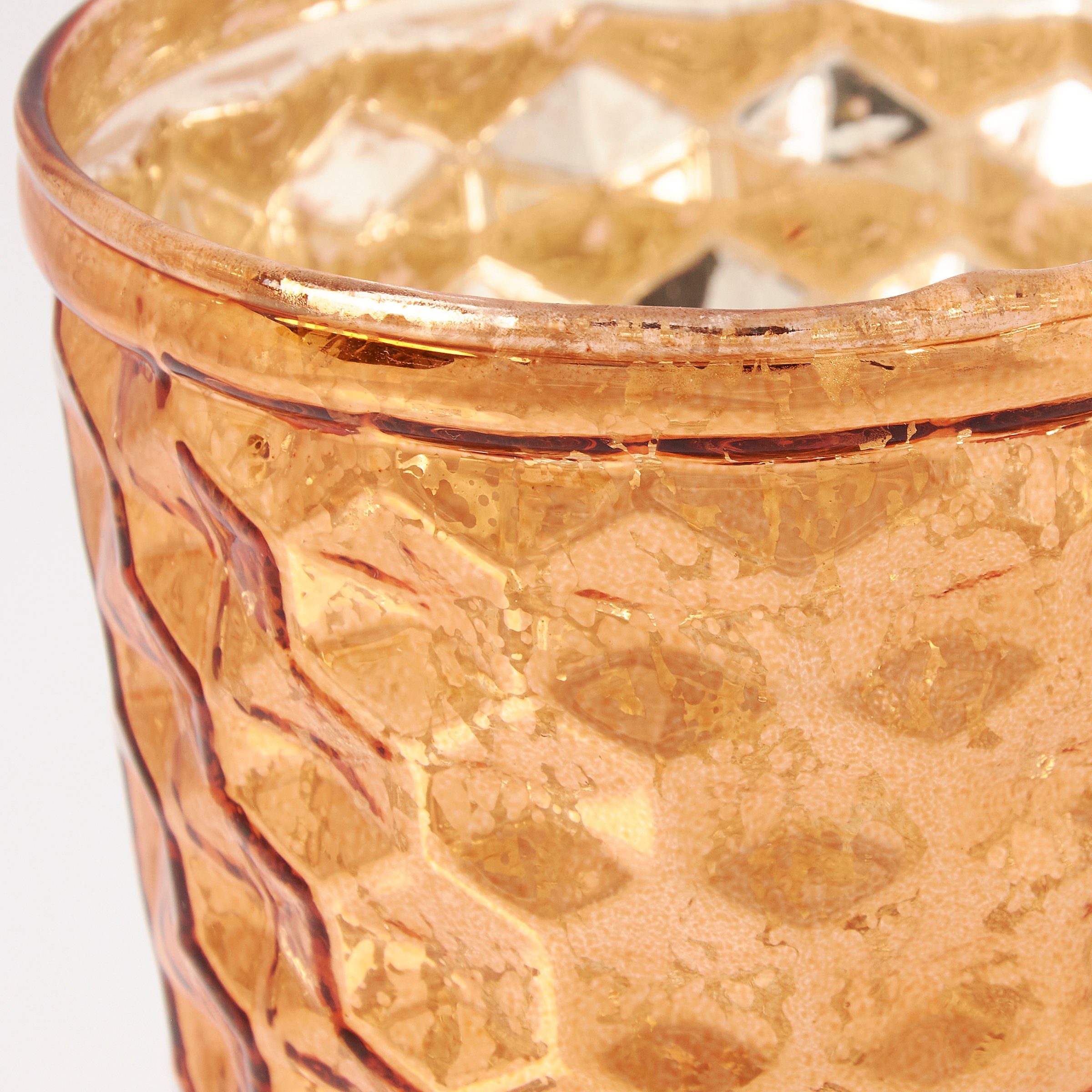 A glass candle holder from ourĀ Candle & Accessories Collection. Candle holder displays an amber inspired glass with textured pattern around the outside. Our Amber candle holder includes space inside to place a votive candle. Candle pictured not included. Perfect for a nature-themed home accent that adds natural lighting to any living space.