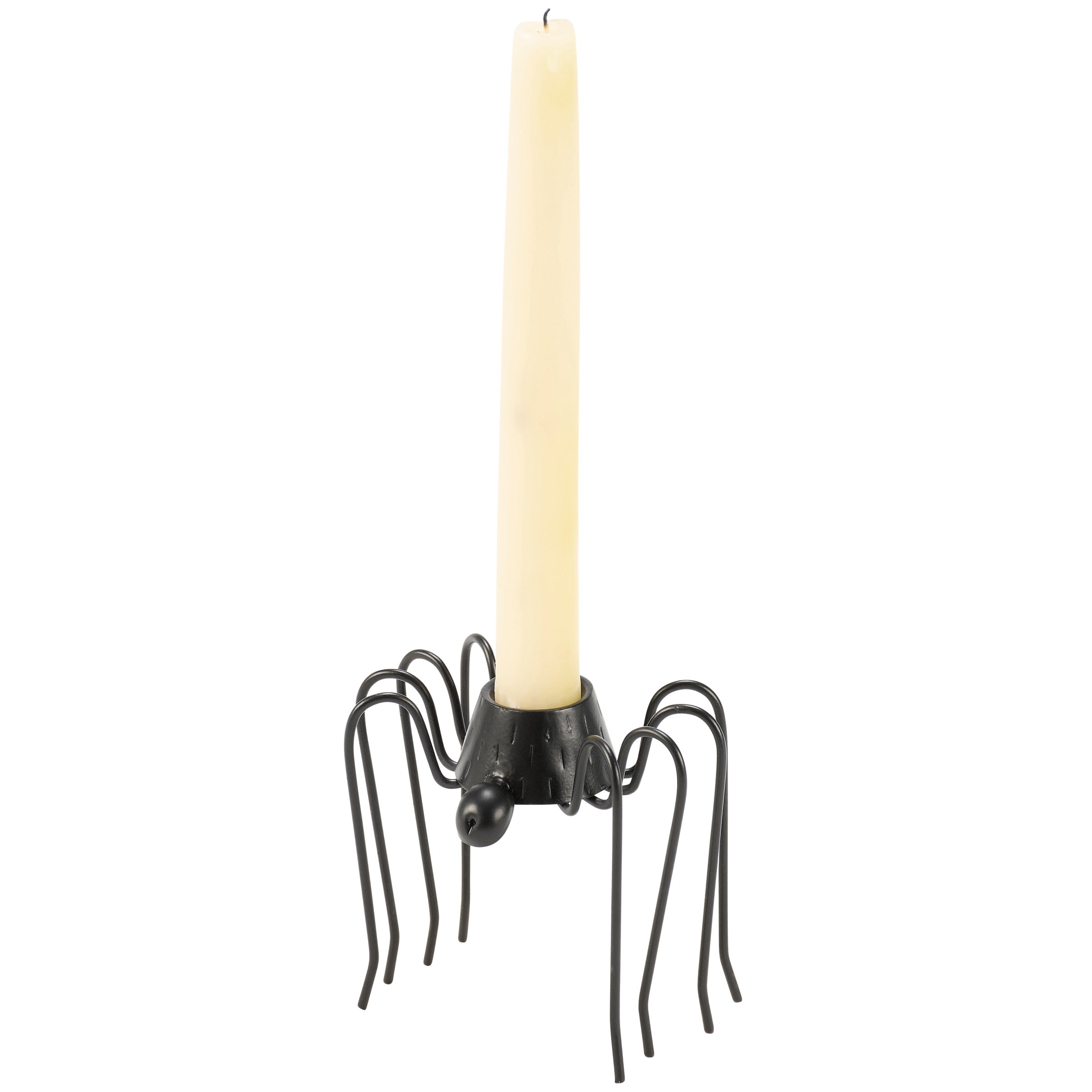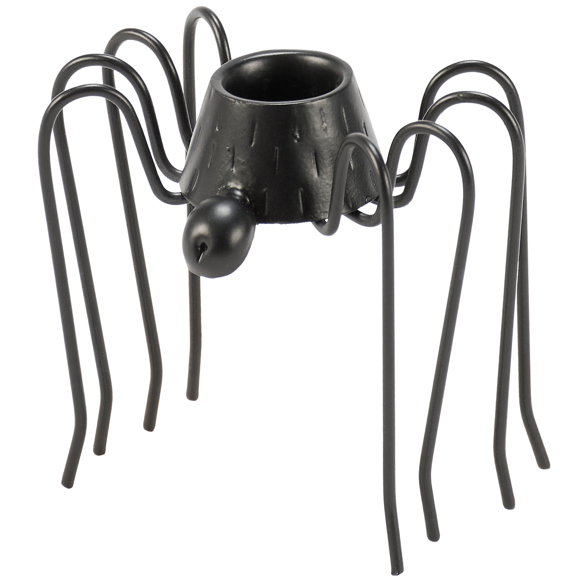 A metal candle holder that coordinates well with décor from our Halloween Collection. Seasonal candle holder features shaped metal that resembles a daddy long leg spider with space on it's back to hold a single candle. Our Daddy Long Legs candle holder fits standard taper candles and can free-stand on flat surface for display. Candle pictured not included. A rustic Halloween home accent perfect for adding natural lighting to any space.
