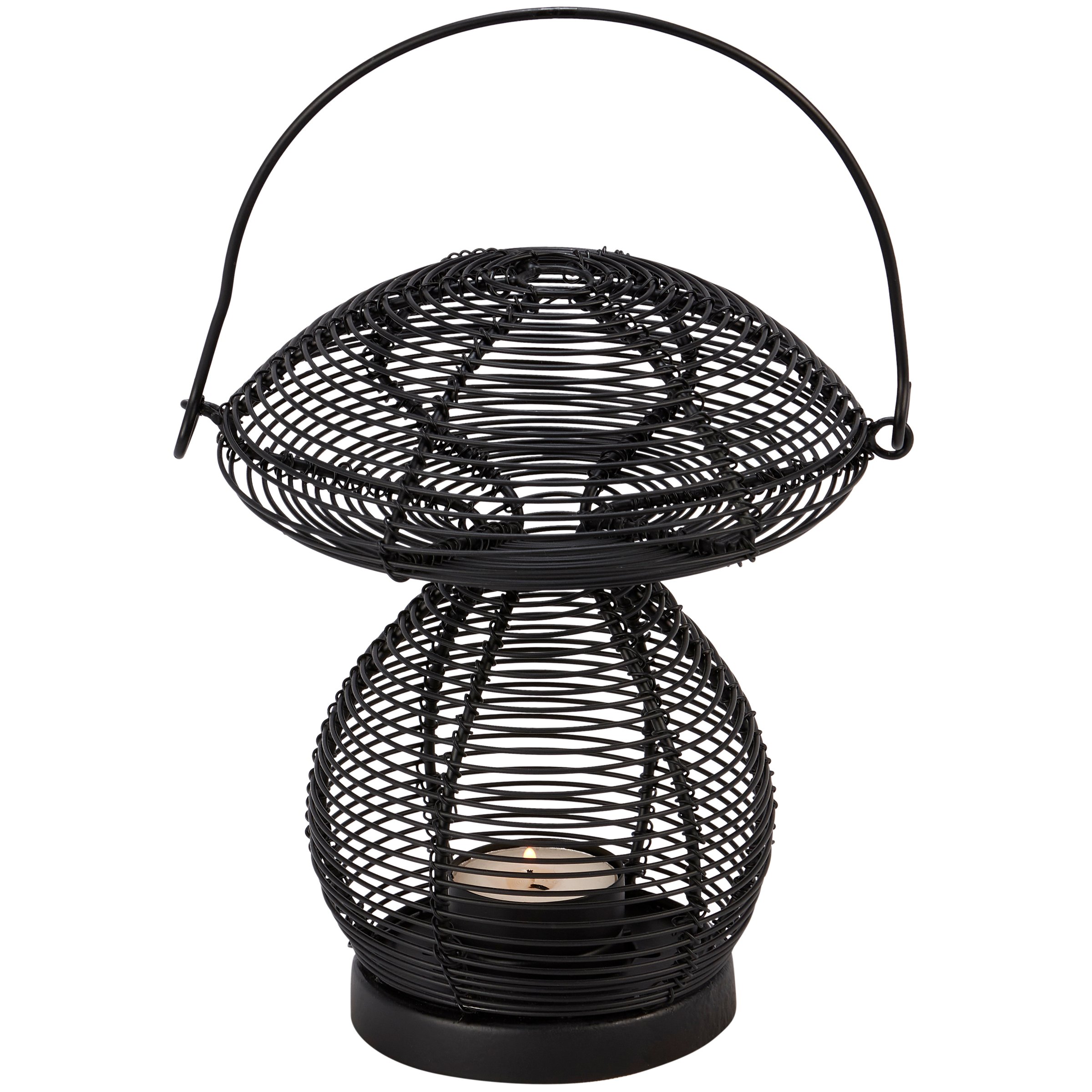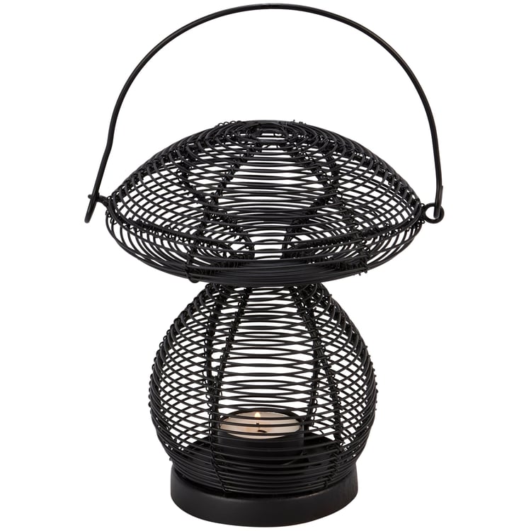 A metal candle holder from our Cottagecore Collection displaying a wire frame design in the shape of a mushroom. Base of mushroom candle holder features a rotating removable slot for a single candle. Our Mushroom candle holder fits a standard tealight candle and can free-stand on flat surface. Candle pictured not included. A nature-themed home accent for adding natural lighting to any living space.