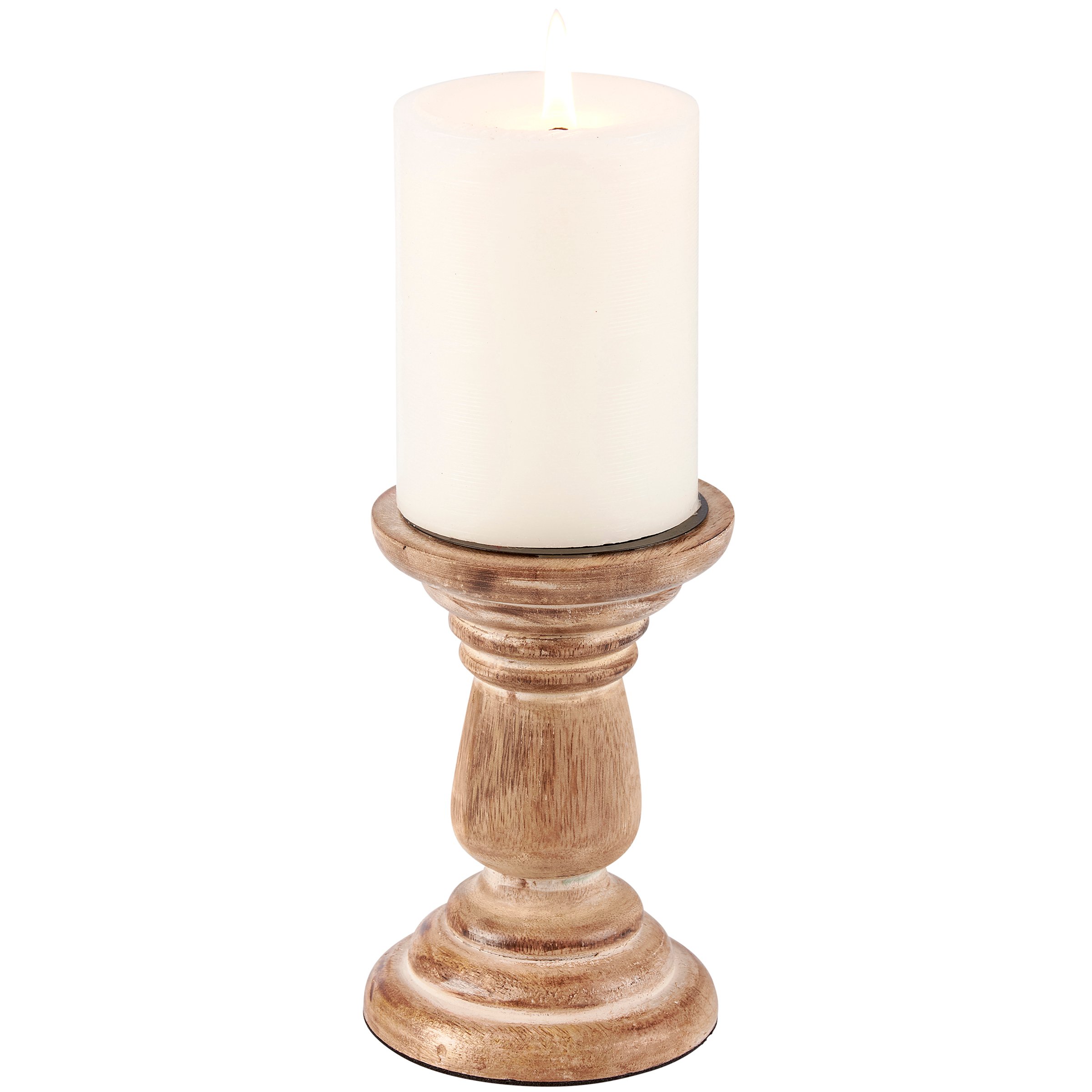 A set of wooden candle holders from our Home Collection including three holders of different height. Candle holder bases feature natural wood with classic design and distressed details for an aged appearance as well as a top slot that fits up to a 2.25" candle. Candles not included. Our Classic candle holder set is perfect for a rustic home accent.