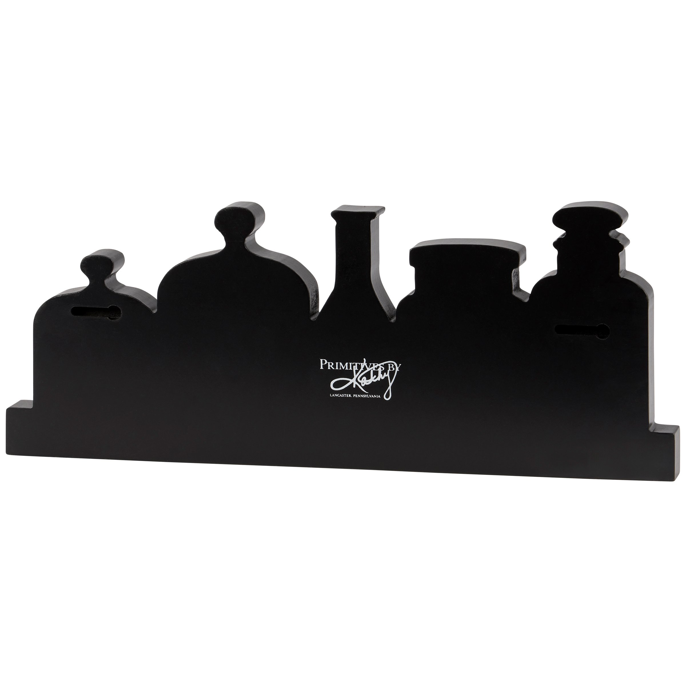 A sturdy wooden sitter from our Halloween Collection cut in the shape of a set of bottles displaying vintage art of various potion brew ingredients. Seasonal sitter features distressed details with coordinating black color on sides and back. Our Brew Bottles chunky sitter is designed to hang via predrilled holes on the back or free-stand alone on flat surface for display. A rustic Halloween home accent that easily adds character to any seasonal display.
