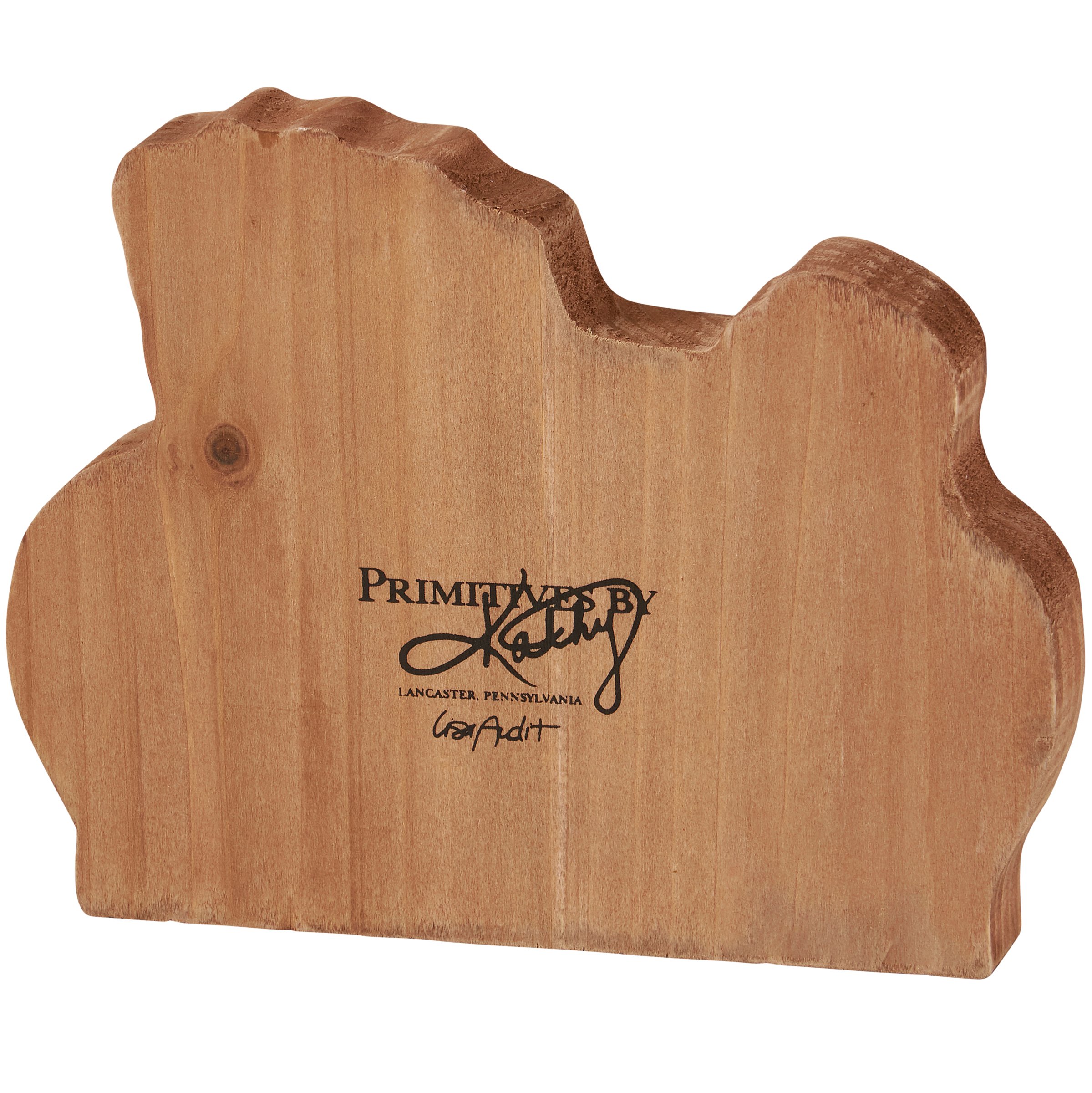 A wooden sitter from our Fall & Harvest Collection cut in the shape of the displayed design of a vintage bicycle surrounded by fall florals and pumpkins. Design is replicated from original hand painted art in a delicate watercolor style. Seasonal sitter features coordinating natural wood on sides and back. Our Fall Bike chunky sitter is designed to free-stand alone on flat surface. A charming seasonal home accent that can be easily displayed in any home or work space.