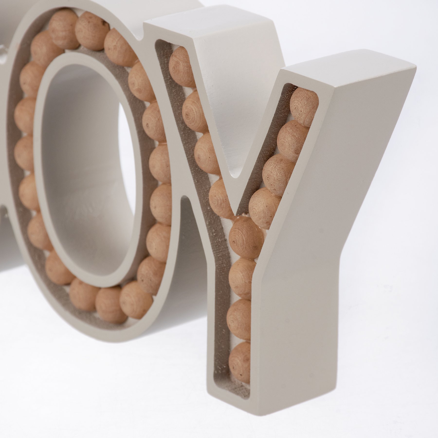 A bohemian-inspired chunky sitter from our Christmas Collection in the shape of "Joy" sentiment. Our Joy chunky sitter features warm gray color and inset with embossed bead design for added texture. Designed to free-stand alone.