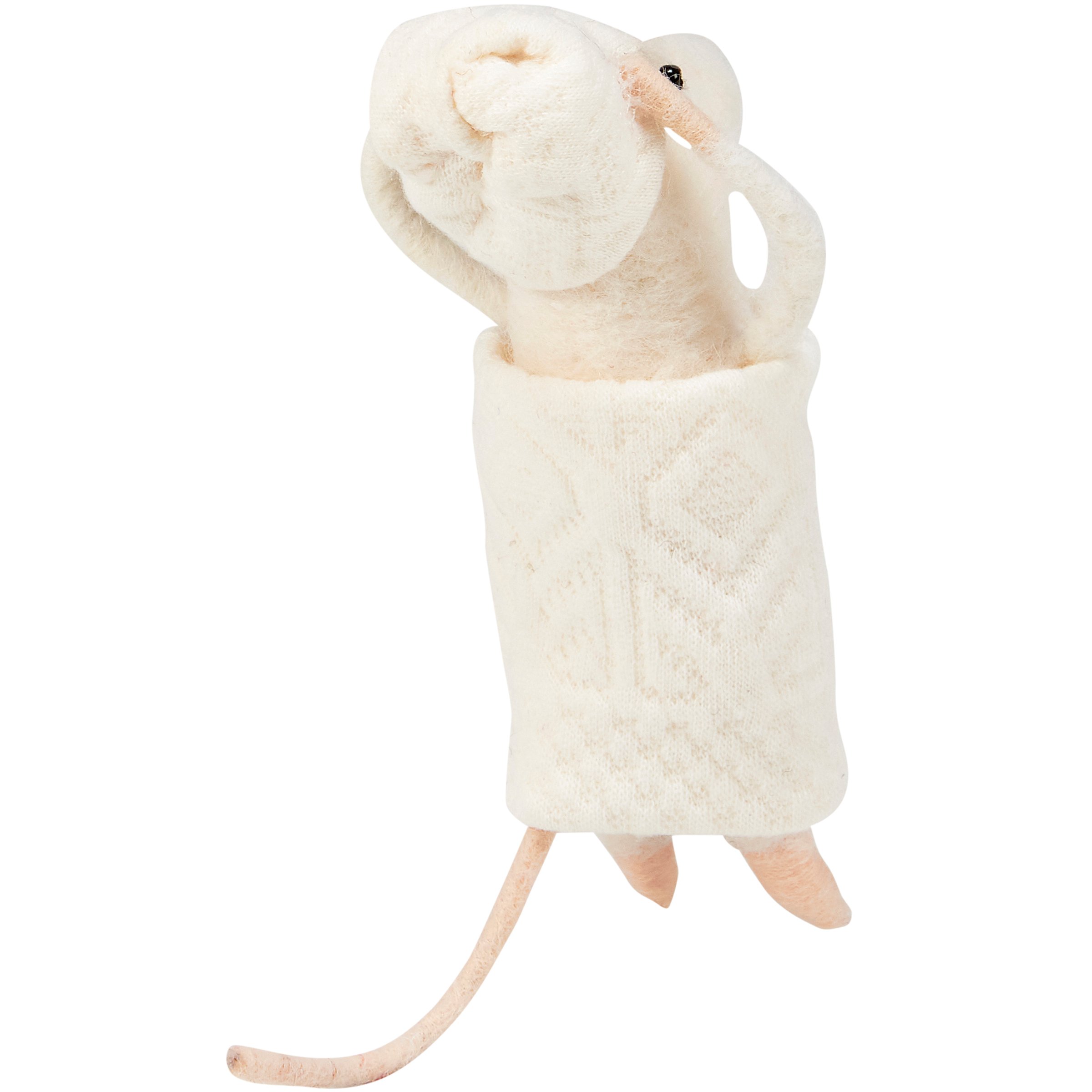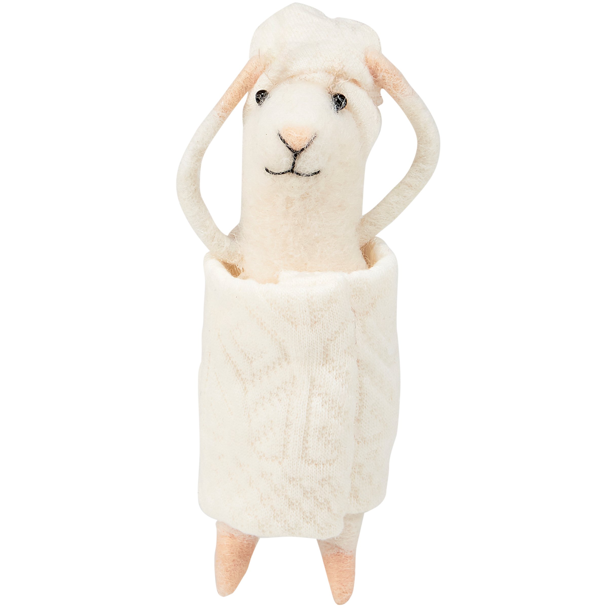 A felt critter from our Felt Collection displaying a happy mouse with a bathtime inspired design perfect for adding character to any bathroom. Mouse critter features cute accents including a fabric towel wrapped around body and head. Our Bathtime Mouse critter is designed to free-stand on flat surface for display. A cute everyday home accent to display alone or as a collection with other critters. Contains small parts; this is not a toy.