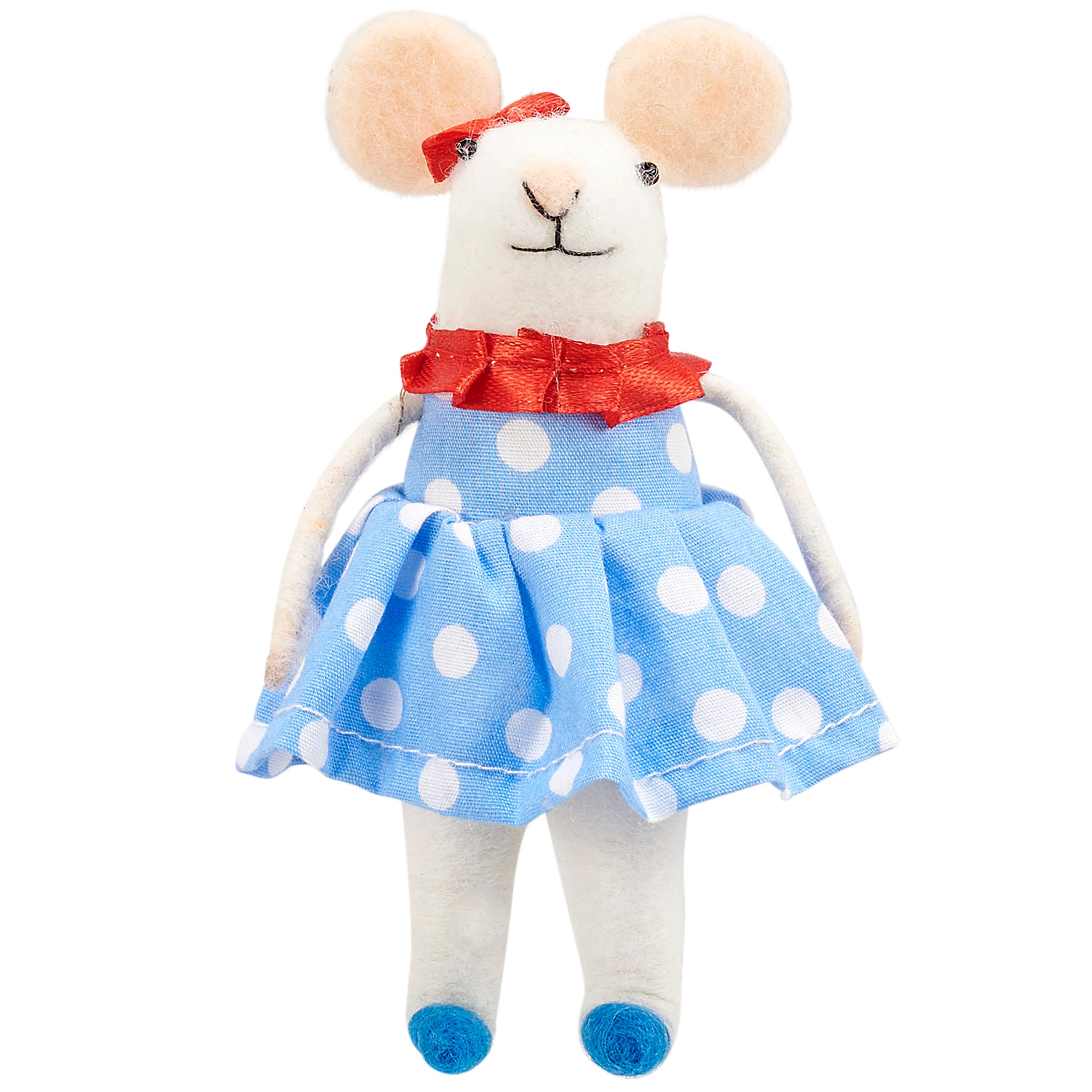 A felt critter from our Patriotic Collection displaying a happy mouse wearing an American flag inspired outfit perfect for adding patriotic flair to any space. Mouse critter features cute handmade details including a red ribbon on the ear and cinched ribbon collar. Our Patriotic Mouse critter is designed to hang for display via the attached hanger. Contains small parts; this is not a toy. A fun patriotic home accent that displays well alone or as a collection with other critters.