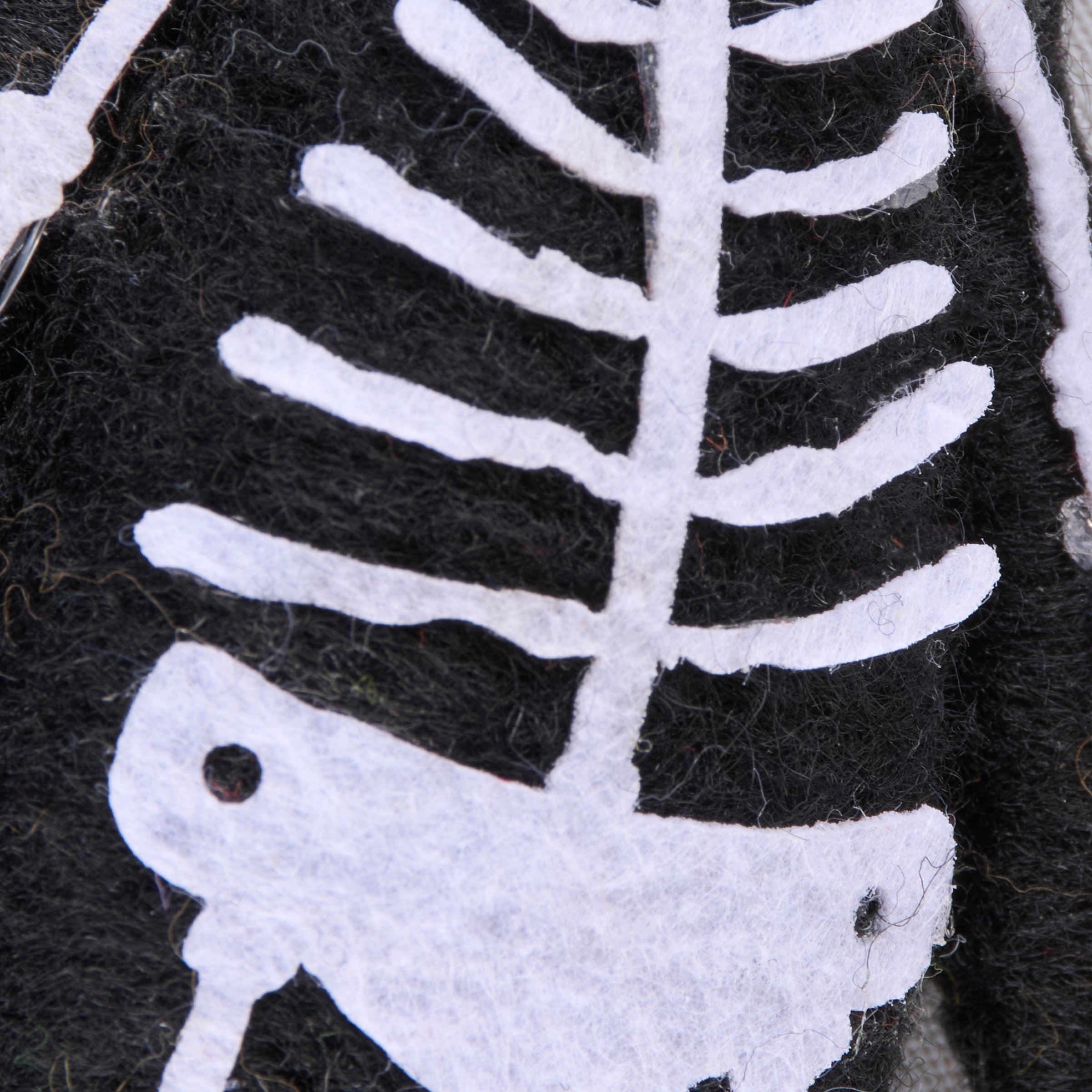 A felt critter from our Halloween Collection displaying a black cat dressed for trick or treating wearing a skeleton costume perfect for adding character to any seasonal display. Halloween cat critter features cute handmade details including felt cutouts in the shape of skeleton design. Our Skeleton Cat critter is designed to free-stand on flat surface for display. Contains small parts; this is not a toy. A fun Halloween home accent that displays well alone or as a collection with other critters.