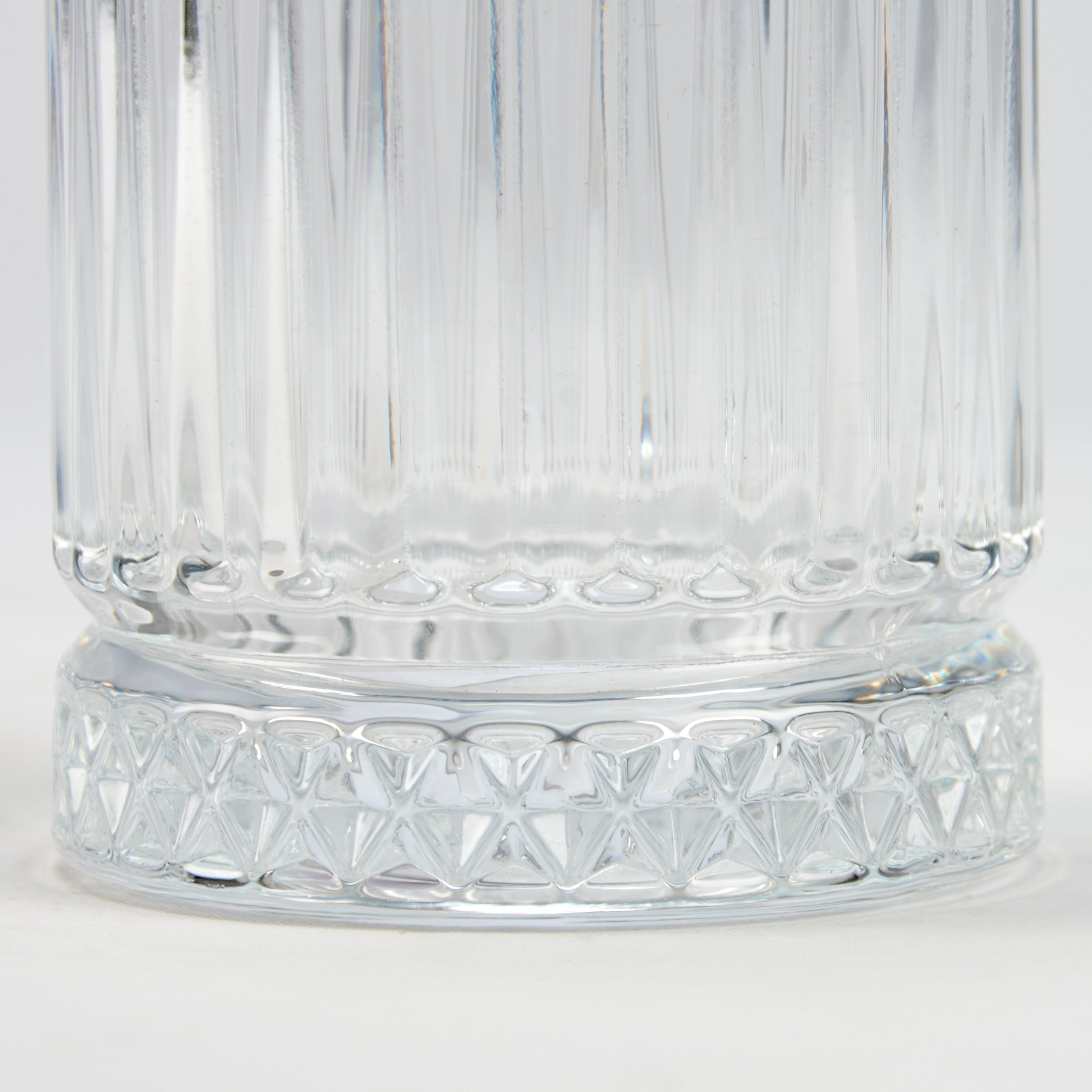 A 15 oz drinking glass displaying a simple design with subtle cuts in the glass for added texture. Our Large Cut Glass drinking glass coordinates well with drinkware from ourĀ Art Deco Collection. Drinking glass is conveniently dishwasher safe for easy cleaning. A piece of stylish drinkware perfect for everyday gatherings.