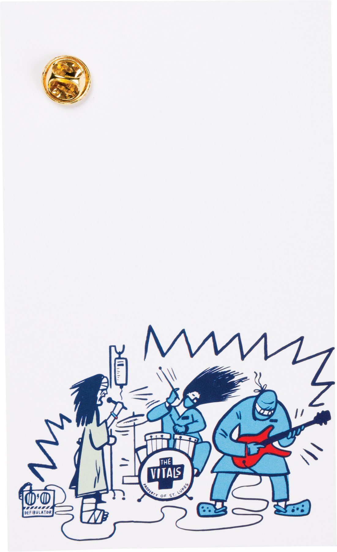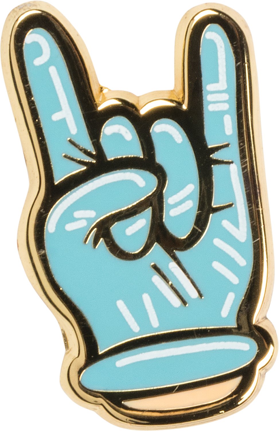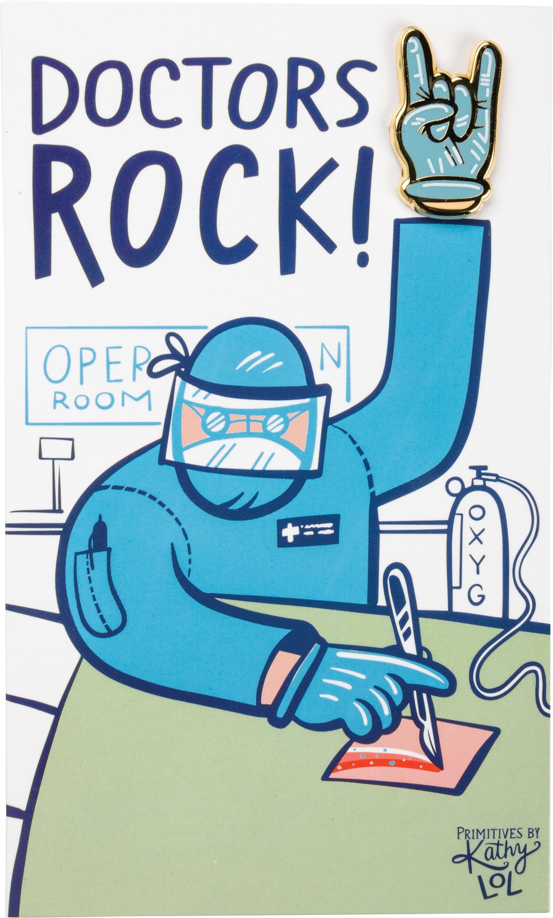 A high-quality hard enamel gloved "rock on" hand symbol pin with butterfly clip closure. Comes packaged on a double-sided, thoughtfully-coordinated "Doctors Rock" with doctor in surgery card and a blank space on the reverse side for a handwritten note.