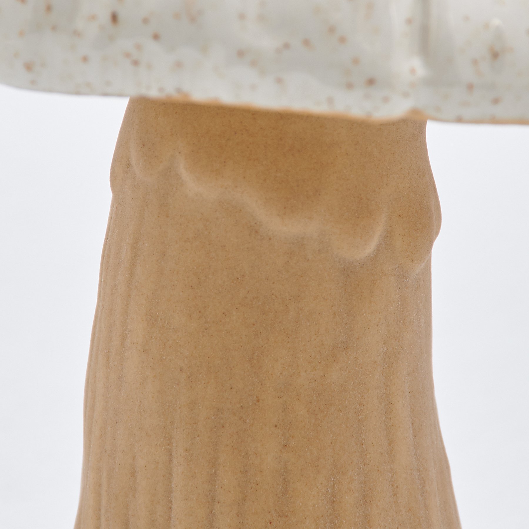 A set of three decorative mushrooms displaying bare ceramic with a white glaze finish on tops. Figurines feature various sizes and shapes. Our Wild Mushrooms figurine set is a perfect home or garden accent and complements well with other pieces in the collection to create a cohesive display. Coordinates well with décor from our Cottagecore Collection.