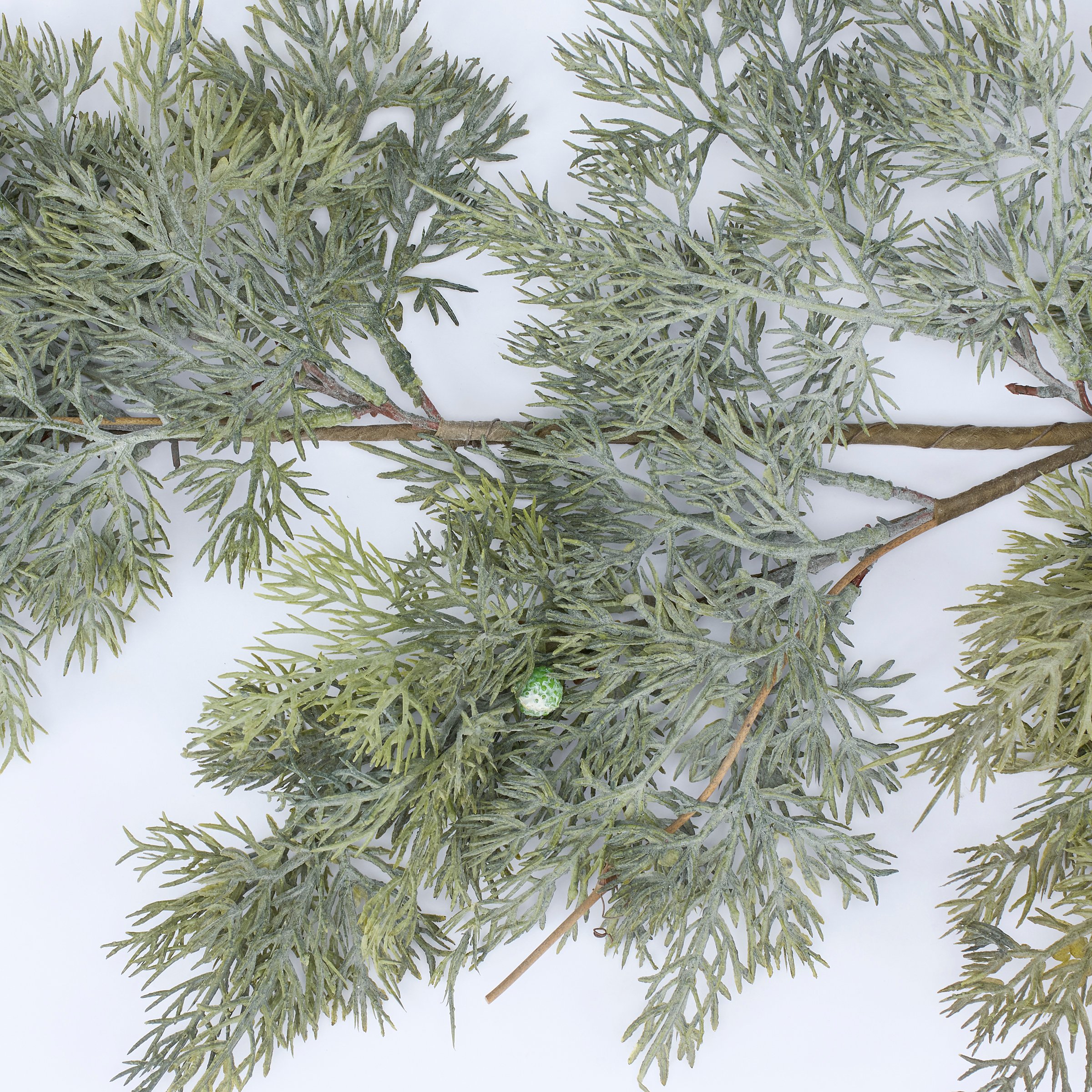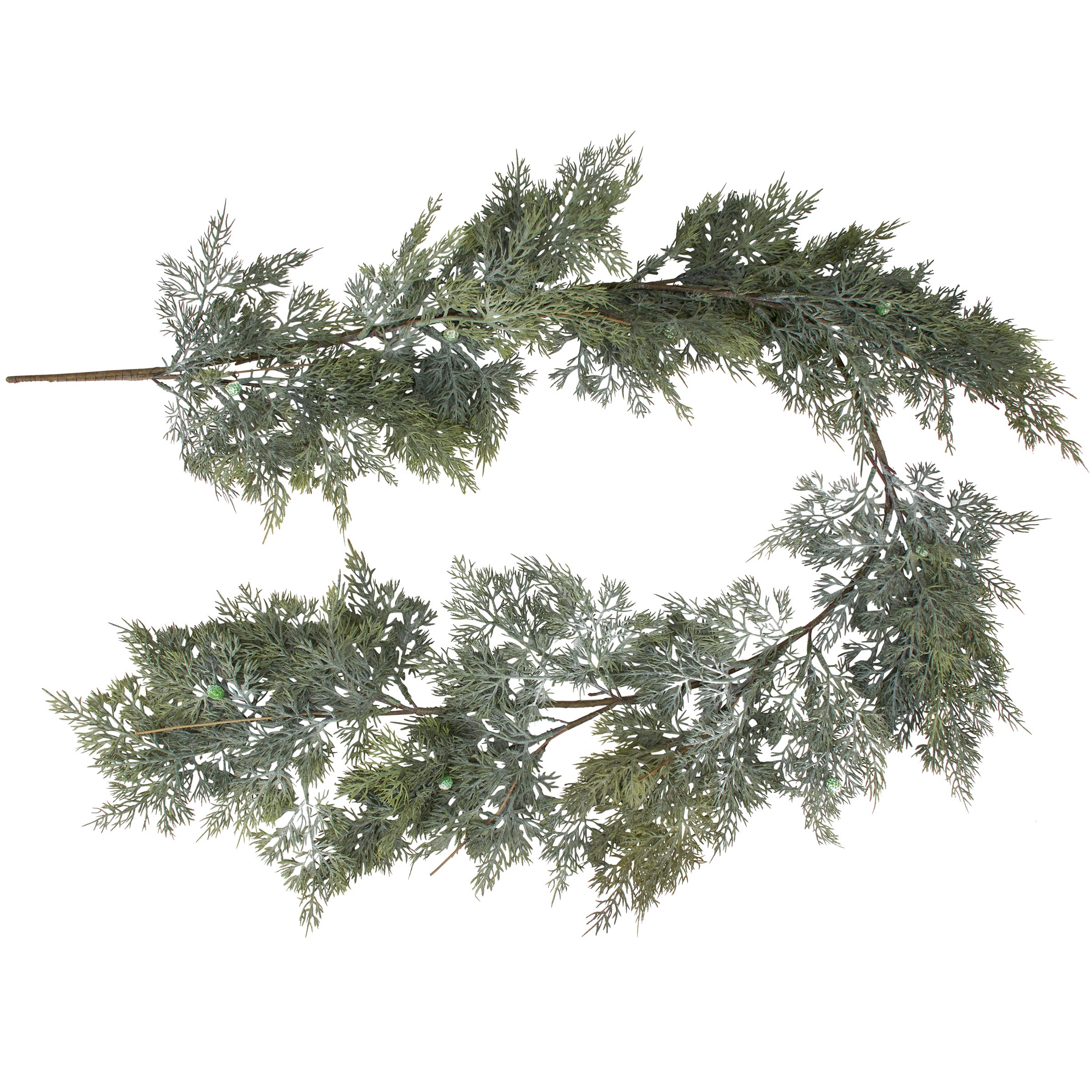 A decorative garland featuring a faux cypress branch design that coordinates well with seasonal decor from our Christmas Collection. Faux greenery brings natural vibes to any space with zero maintenance. Pair with other faux botanicals to create a rich, natural display without the worry of withering away. Our Cypress garland includes 60 inches of length for plenty of coverage. A botanical home accent with a variety of seasonal display options.