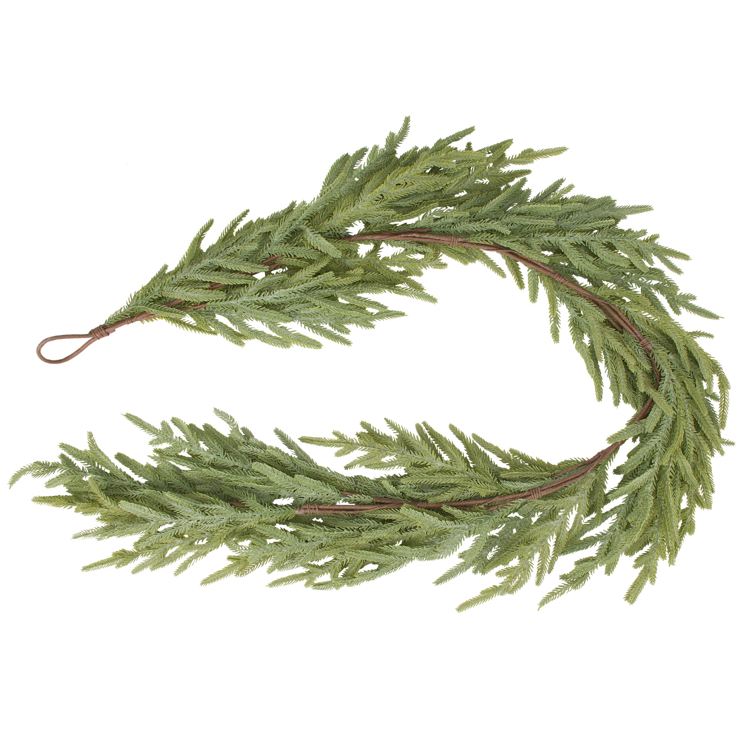 A decorative garland featuring a faux Norfolk pine branch design that coordinates well with seasonal decor from our Christmas Collection. Faux greenery brings natural vibes to any space with zero maintenance. Pair with other faux botanicals to create a rich, natural display without the worry of withering away. Our Norfolk Pine garland includes 60 inches of length for plenty of coverage. A botanical home accent with a variety of seasonal display options.