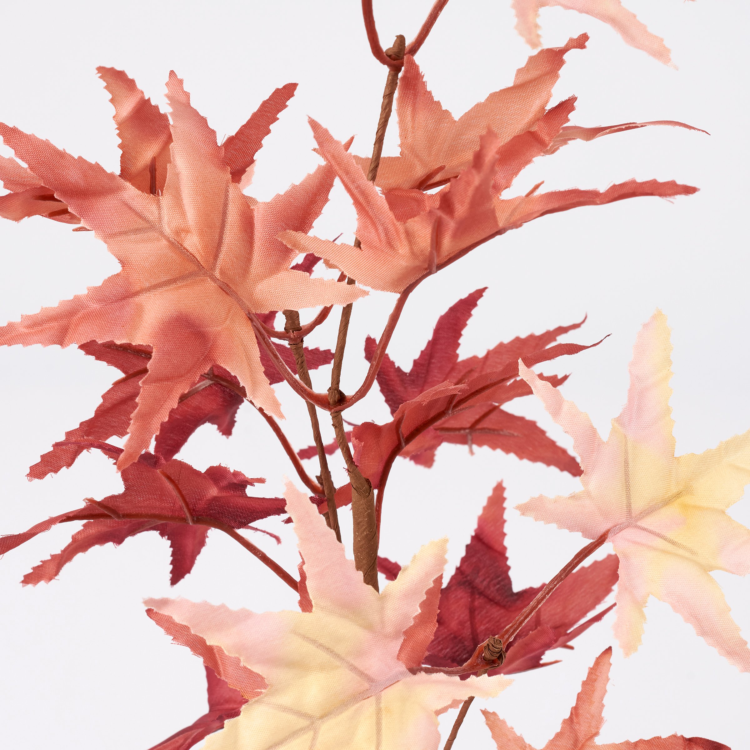 A pick of maple leaves in a blush inspired color palette perfect for adding to a seasonal vessel. Faux plants bring botanical vibes to any space with zero maintenance. Pair with other faux botanicals to create a rich, natural display without the worry of withering away. Our Blush Maple floral pick stands 15.75 inches tall and complements well with décor from our Fall & Harvest Collection.