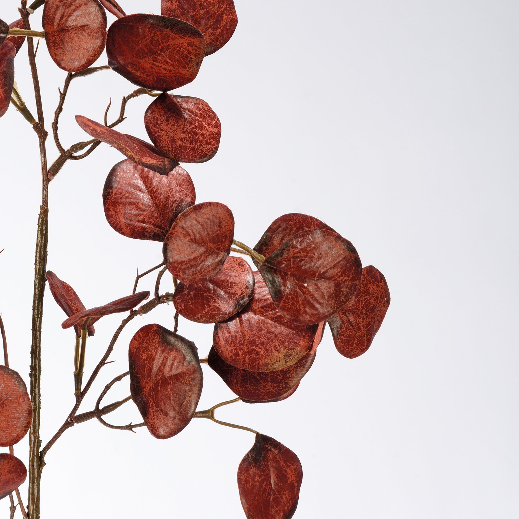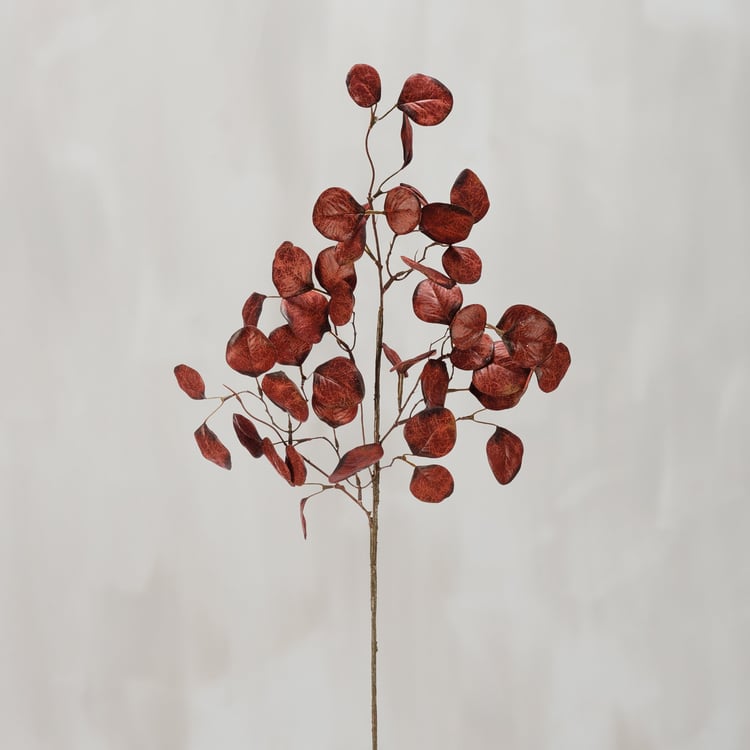 A burgundy eucalyptus pick. Our Burgundy Eucalyptus pick is packaged in a protective polybag.