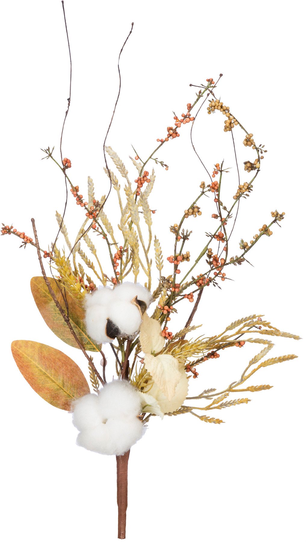 Encompassing true seasonal farmhouse style, an 18" cotton and leaves wreath that's the perfect touch for fall!