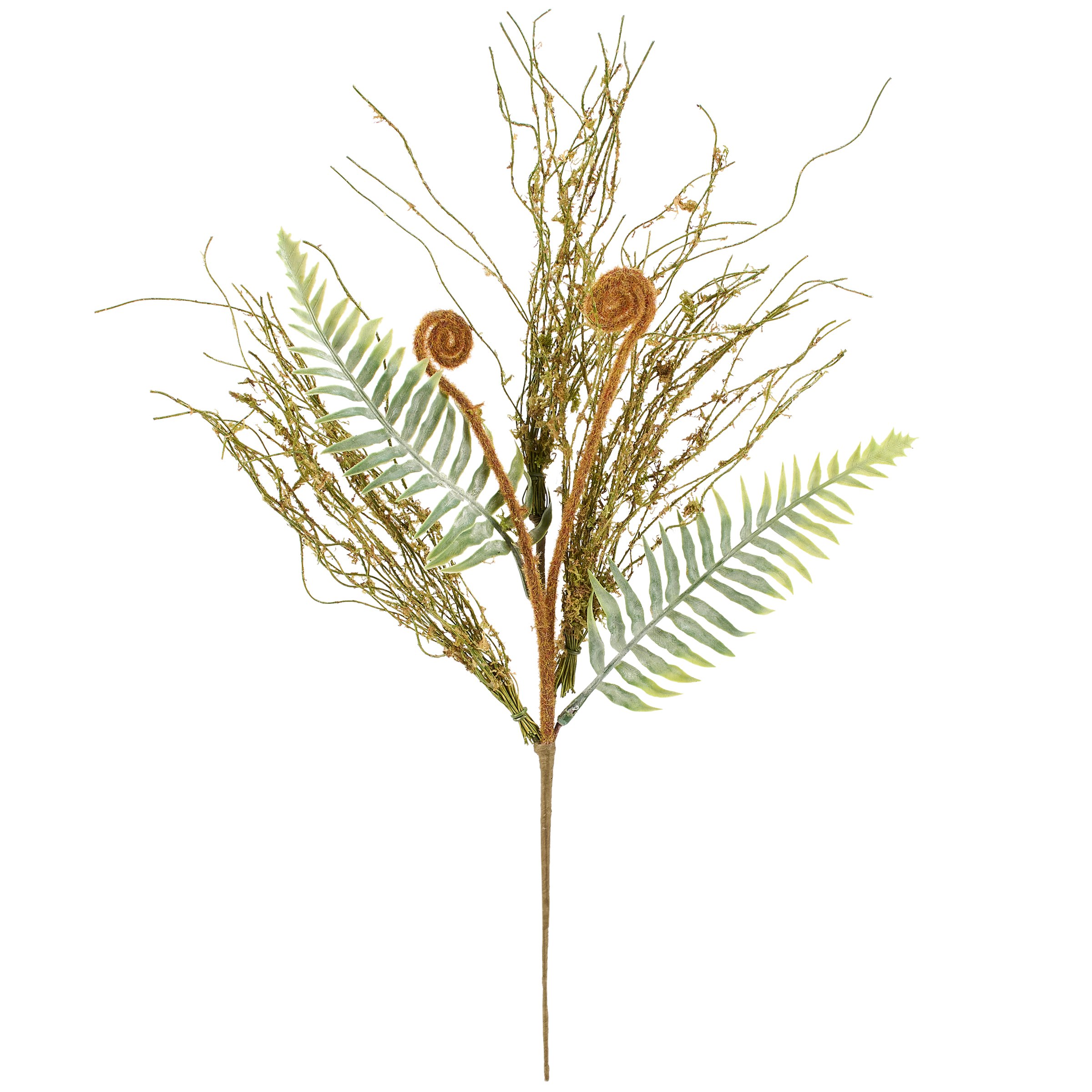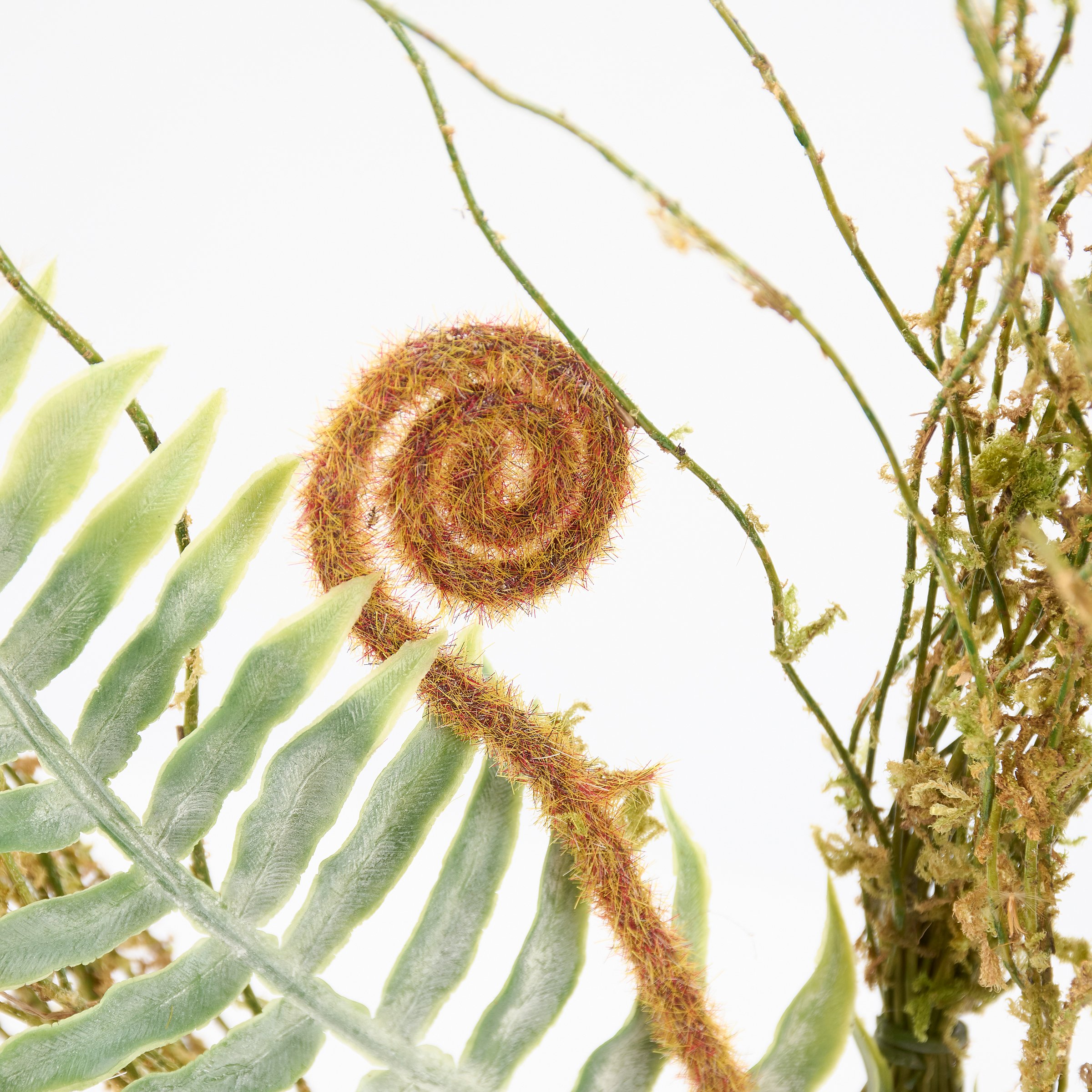 A pick of fiddlehead with complementing greenery perfect for adding to any vessel. Faux plants bring botanical vibes to any space with zero maintenance. Pair with other faux botanicals to create a rich, natural display without the worry of withering away. Our Fiddlehead Mix floral pick stands 23 inches tall and complements well with décor from our Cottagecore Collection.