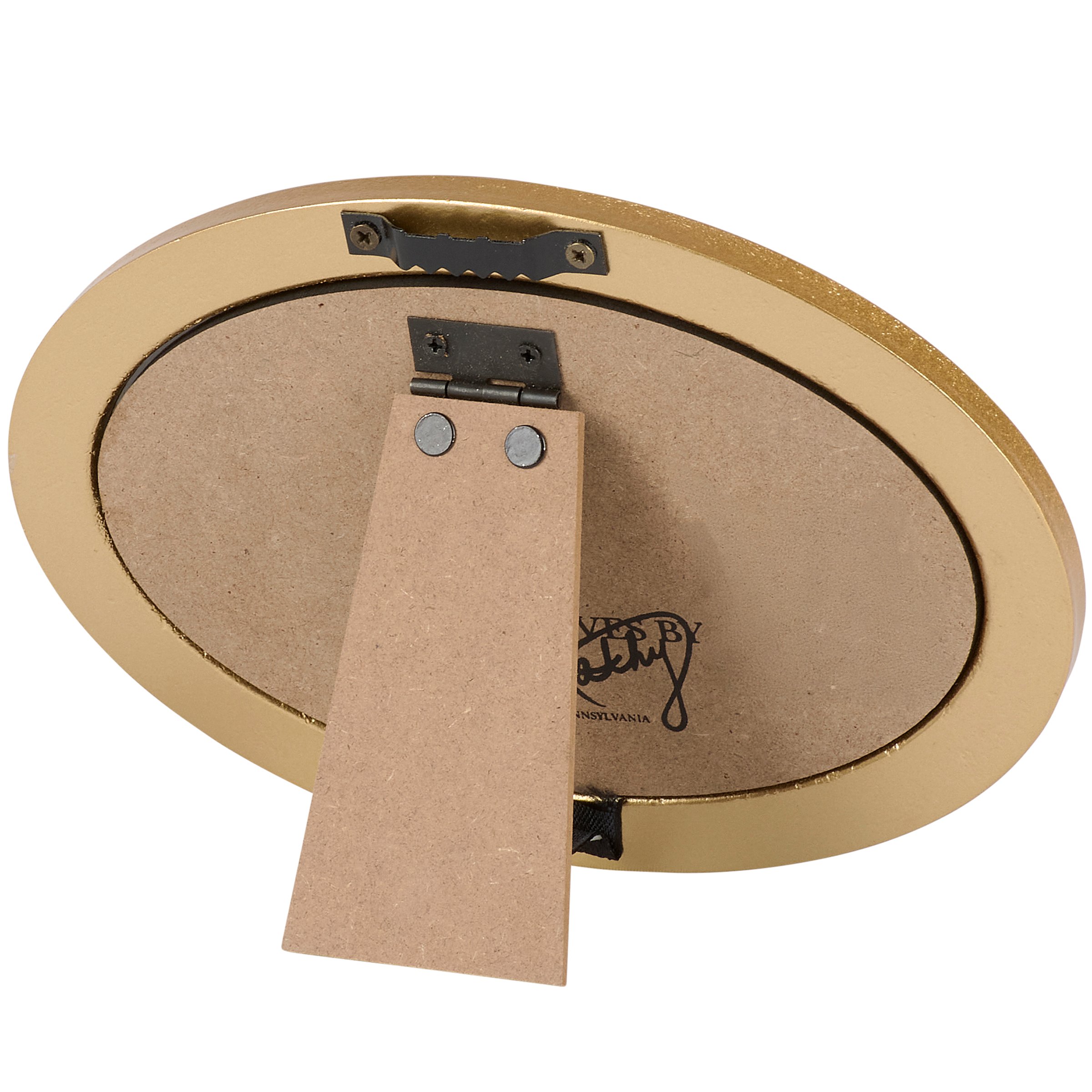 A small framed art piece from our Cottage Charm Collection displaying vintage art of a cottage farm in a hand illustrated sketch style. Vintage frame features oval shape with green color finish with metallic gold accents. Our Cottage Farm framed art is easy to hang for display via the attached sawtooth hanger or can free stand using the back easel. A vintage farm-themed home accent perfect for everyday display.