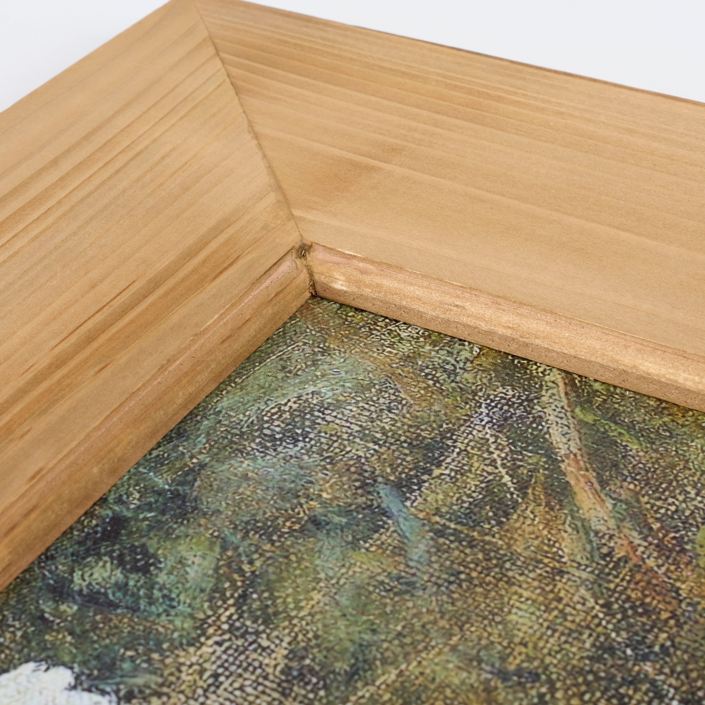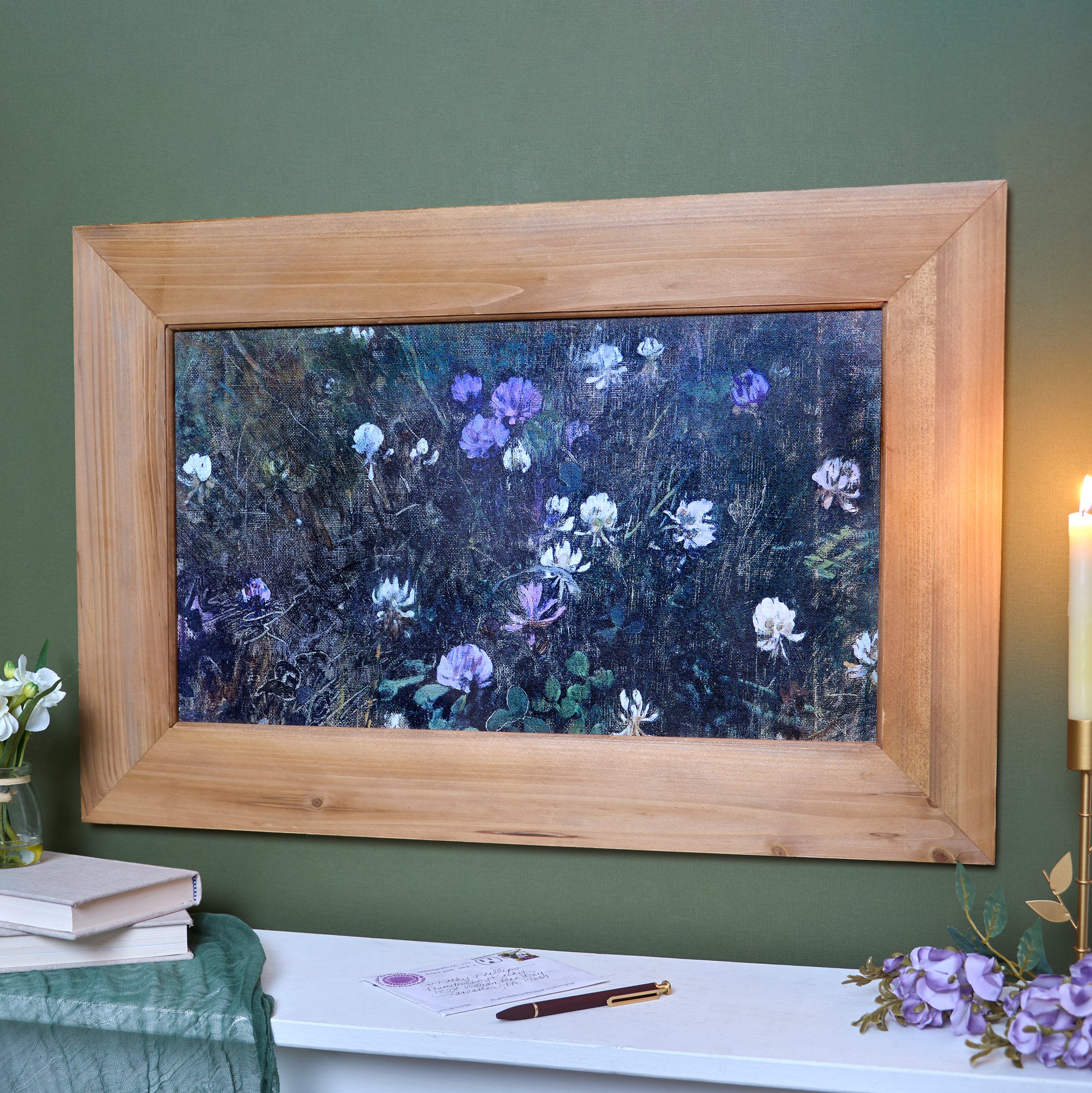 A framed art piece from our St. Patrick's Day Collection displaying vintage art of a field of clovers and flowers that coordinates well with rustic home decor. Frame features complementing natural wood. Our framed Clover Field wall art is ready to hang for display via attached sawtooth hangers on the back. A rustic St. Patrick's Day home accent perfect for seasonal display.