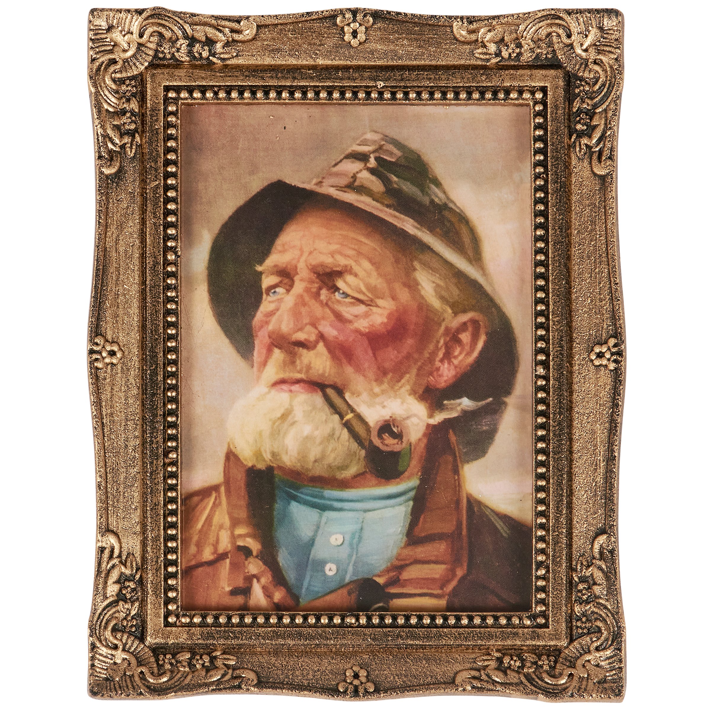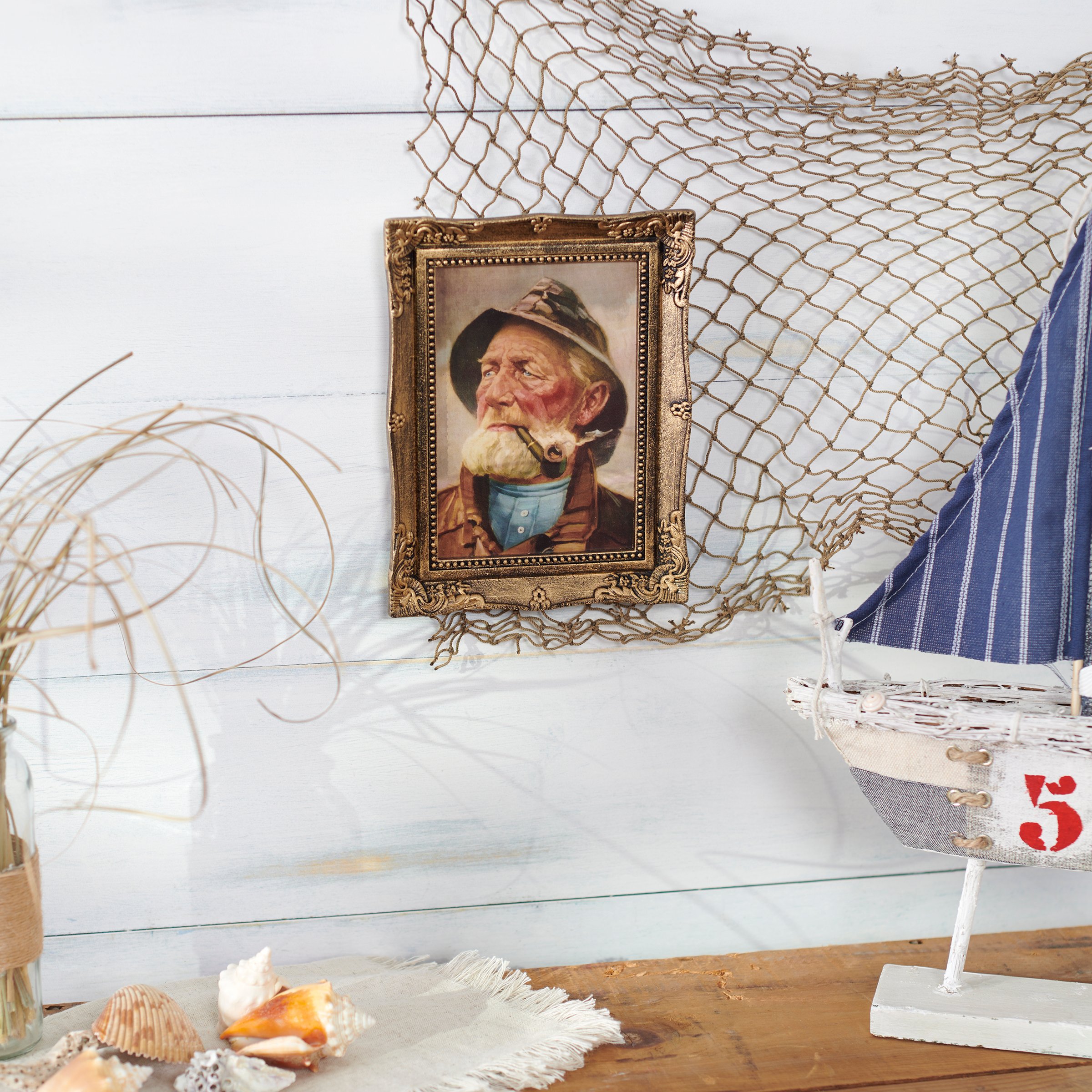 A framed art piece from our Beach Collection displaying vintage art of an old fisherman that coordinates well with vintage coastal decor. Frame features molded ornate design with metallic antique wash for a vintage style. Our Old Fisherman framed wall art is easy to hang via attached sawtooth hanger on the back. A vintage coastal home accent perfect for everyday display.
