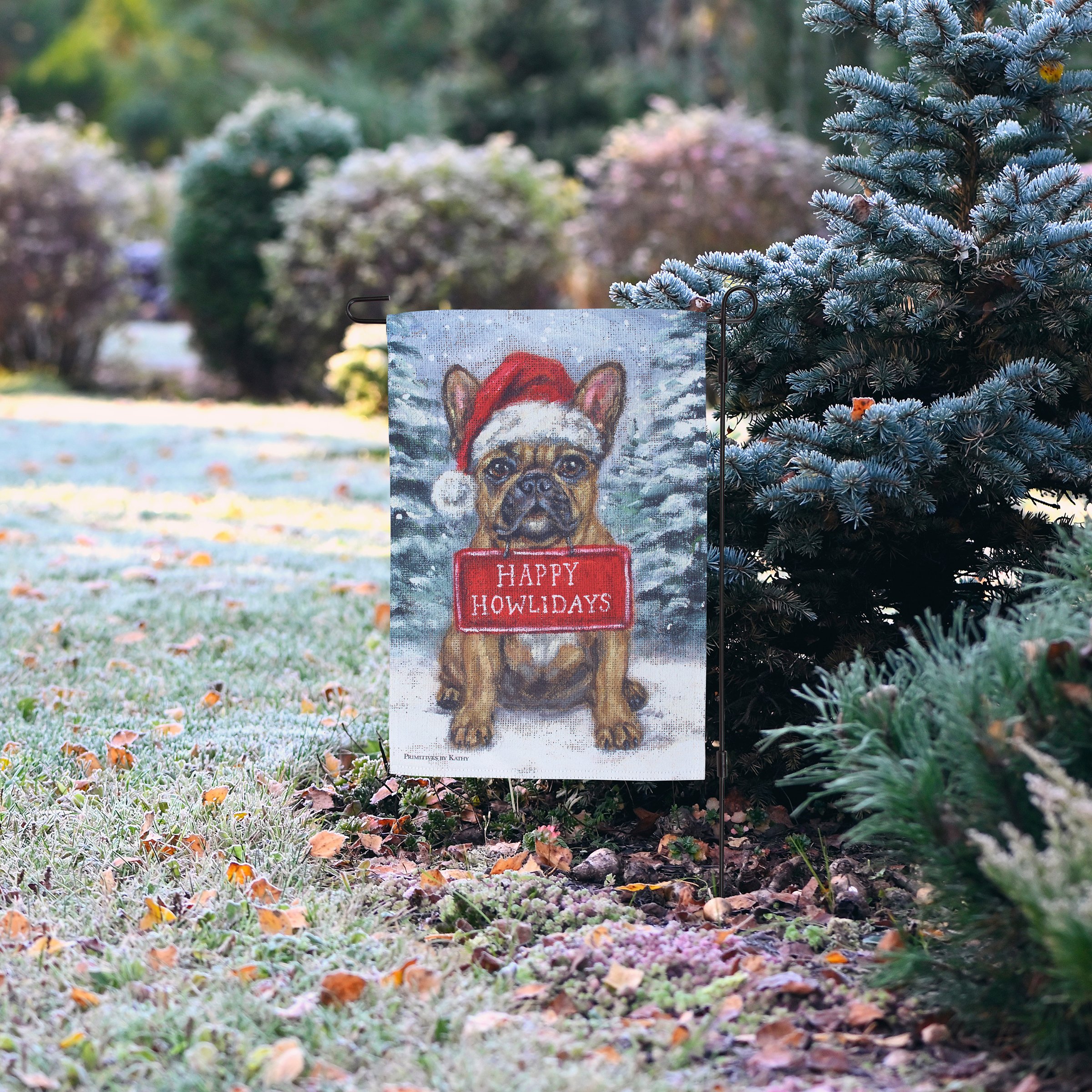 Frenchie Happy Howlidays Garden Flag