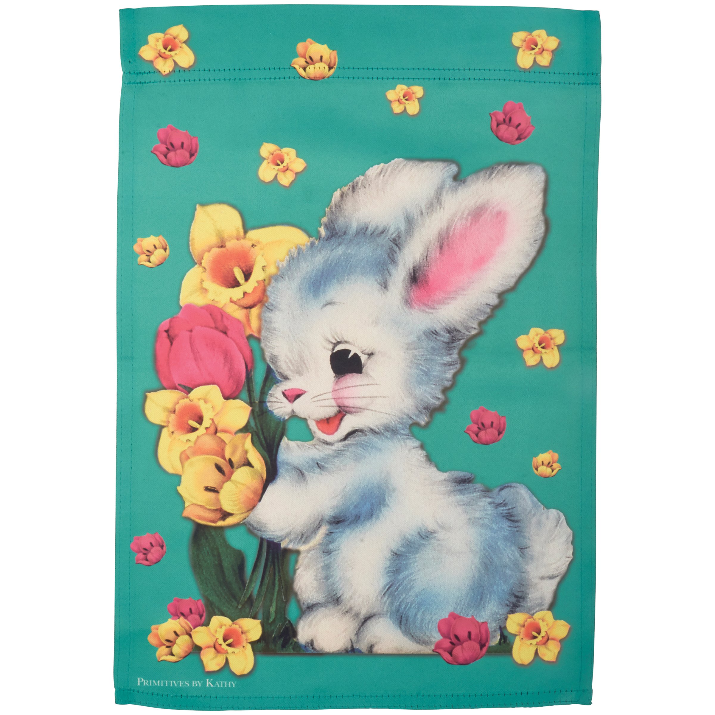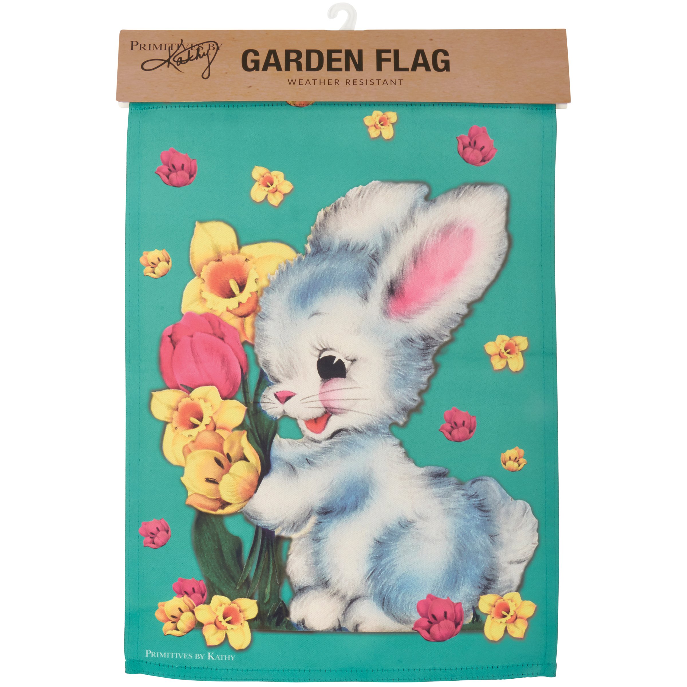 A double-sided polyester garden flag from our Easter & Spring Collection displaying a delightful vintage bunny and flowers design. Flag is weather-resistant and features an opening to hang on ourĀ Garden Flag Pole. Hand-wash only. Our Vintage Easter garden flag is packaged with a header card and hook to hang on rack.