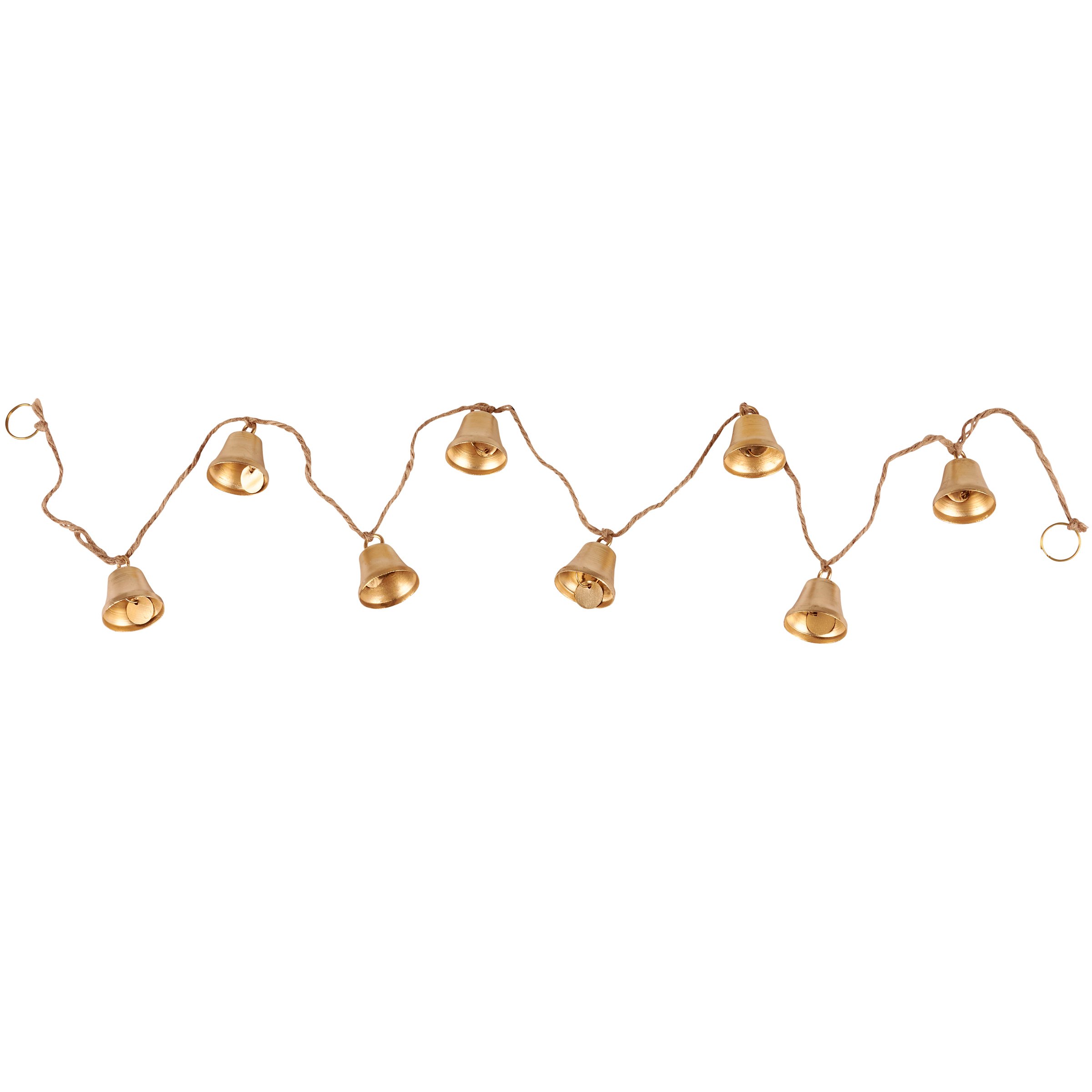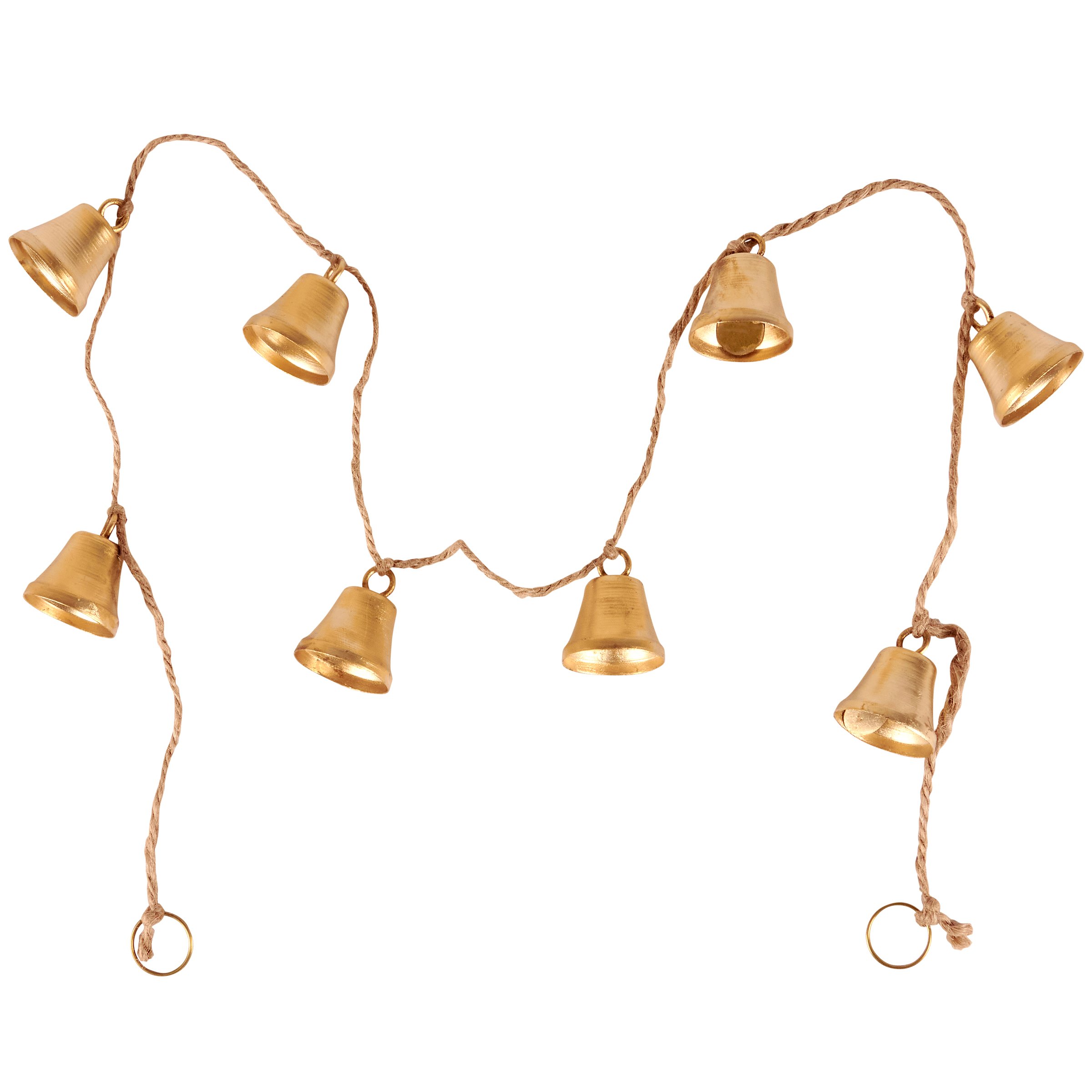 A decorative garland from our Christmas Collection displaying a vintage design of eight decorative metal bells hanging along a jute rope. Garland features metal rings at each end. Our Bells garland includes 48 inches of length for plenty of coverage and is easy to hang via metal rings. A seasonal home accent with a variety of display options.