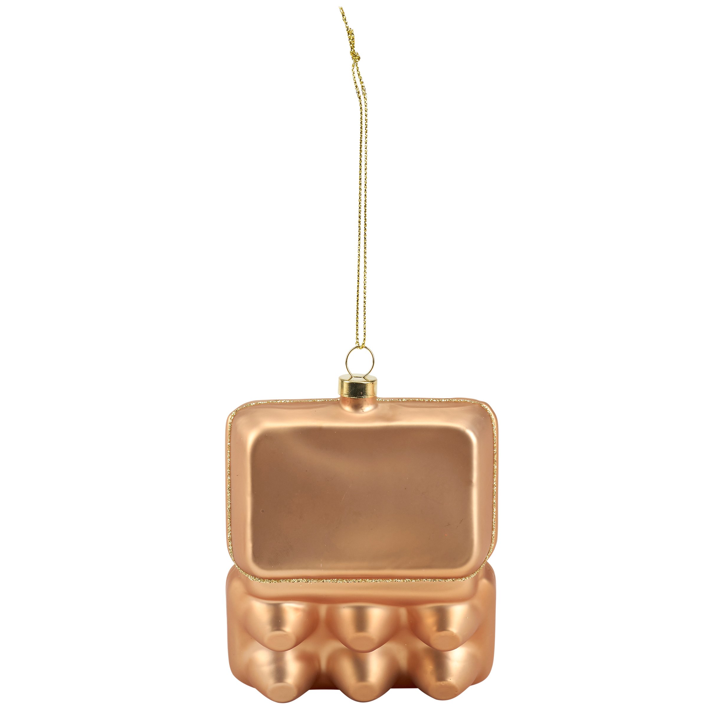 A glass ornament from our Farmhouse Collection displaying an open egg carton design with glitter accents inside and printed label detail. Our glass Chicken Eggs ornament is ready to hang for display via the included top loop and string hanger. A vintage style gift perfect for adding personality to a Christmas tree or for everyday farm themed displays.