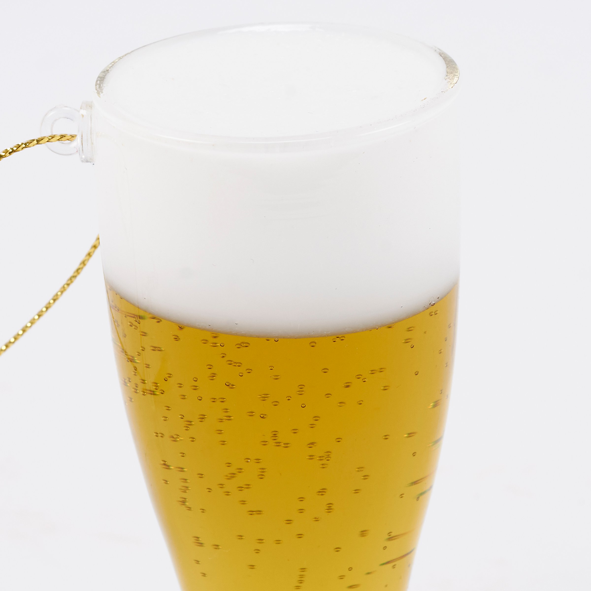 A glass ornament from our Art Deco Collection displaying a fun beer inspired design of a pint glass with resin to resemble draft beer in the glass. Our glass Draft Beer ornament is ready to hang for display via the included top loop. A vintage style gift perfect for adding personality to a Christmas tree or for everyday beer-themed displays.