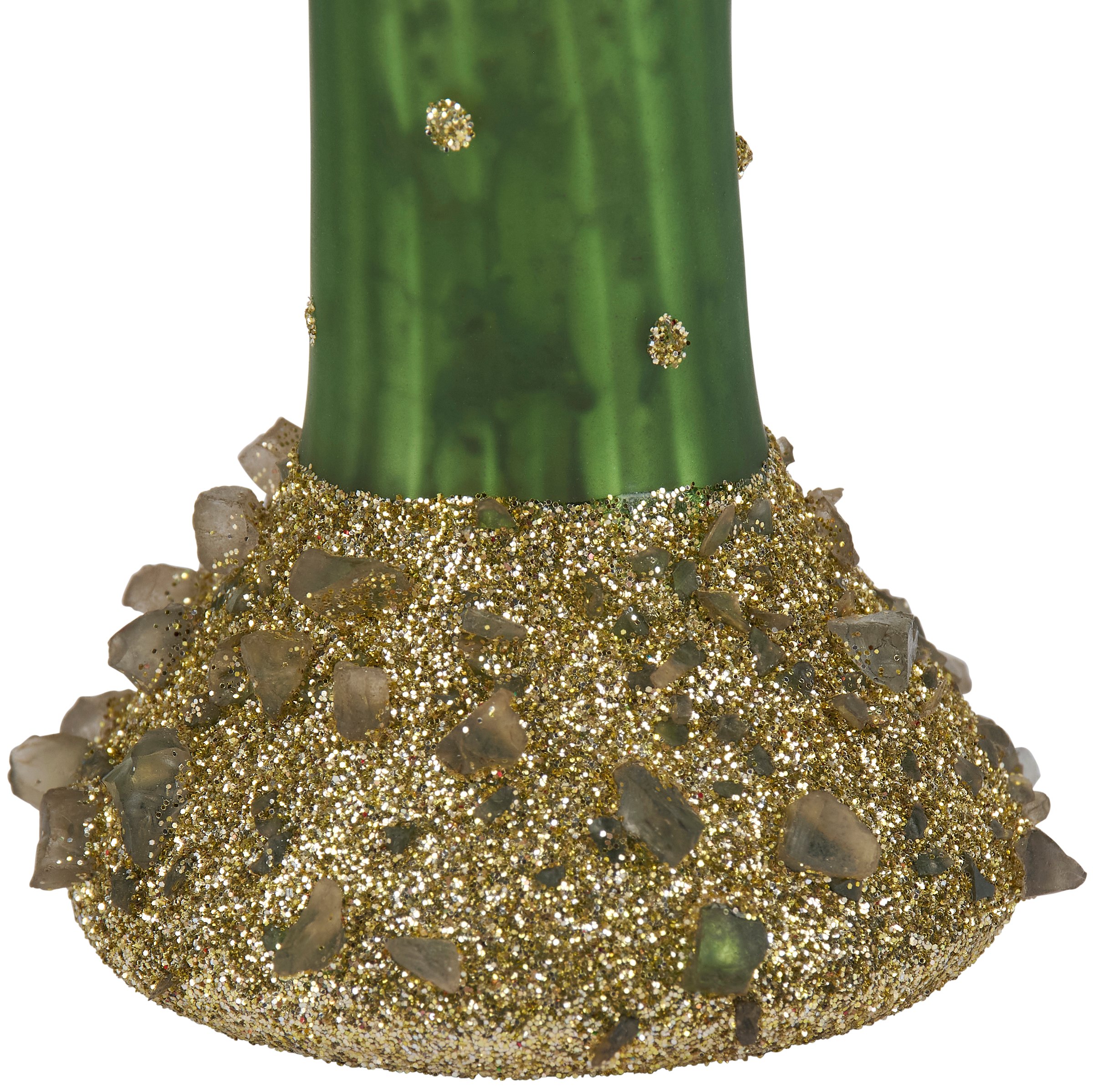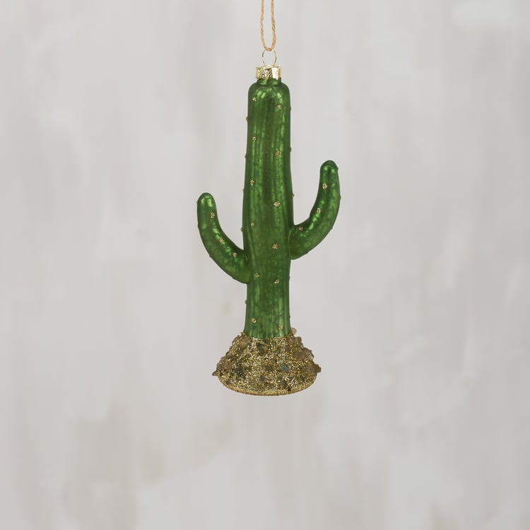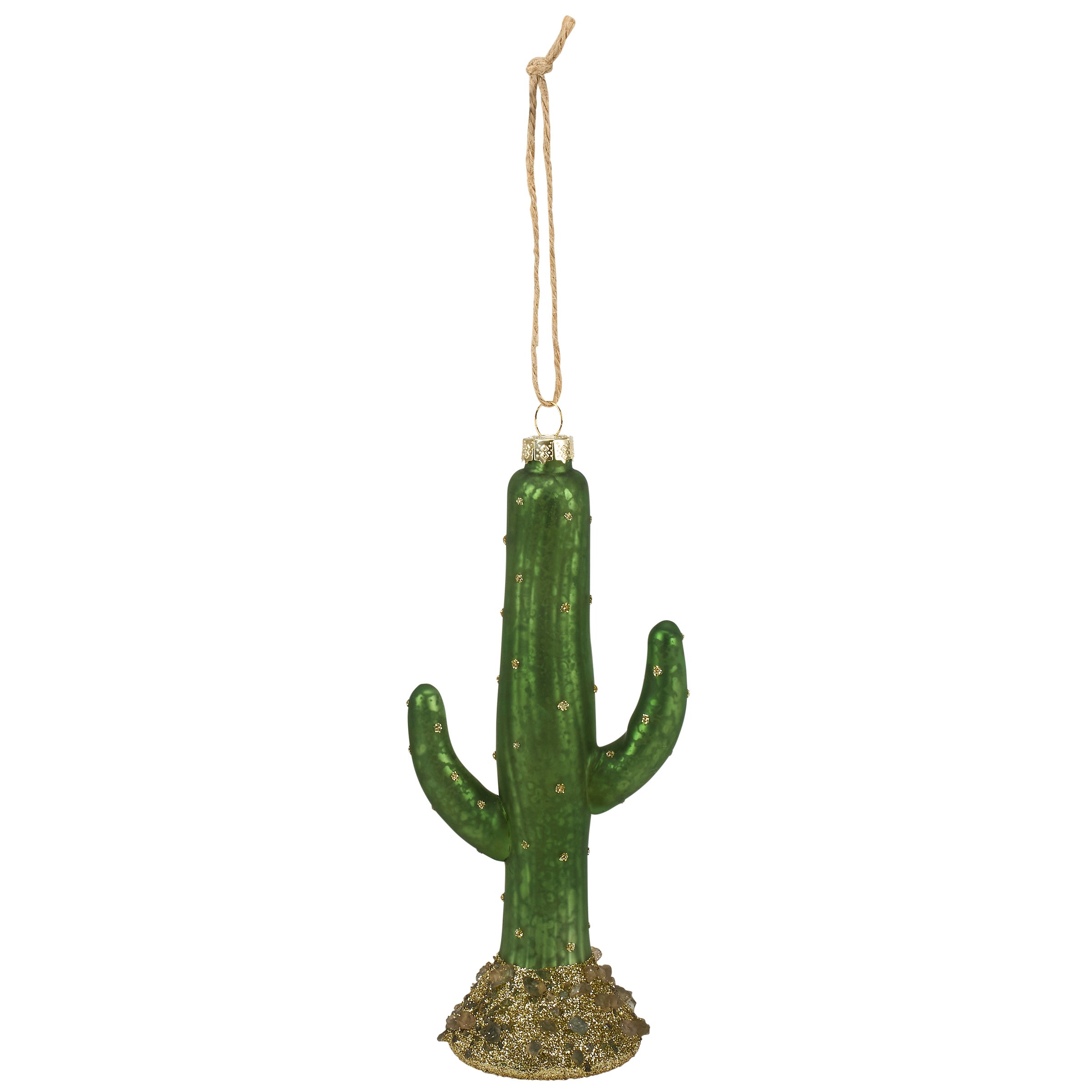 A glass ornament from our Western Collection displaying a saguaro cactus design with painted details and glitter accents. Our glass Saguaro Cactus ornament is ready to hang for display via the included top loop and string hanger. A vintage style gift perfect for adding personality to a Christmas tree or for western themed displays.