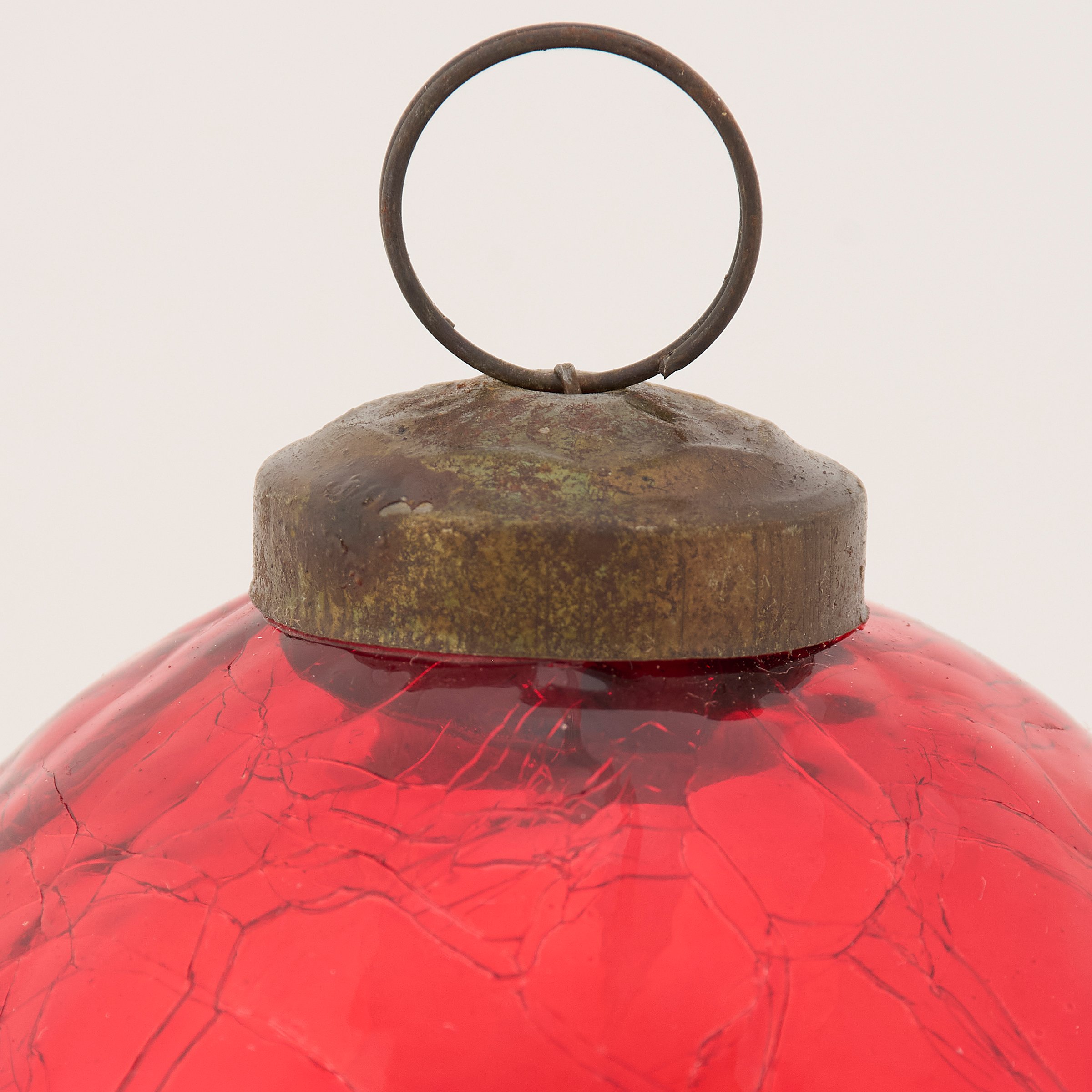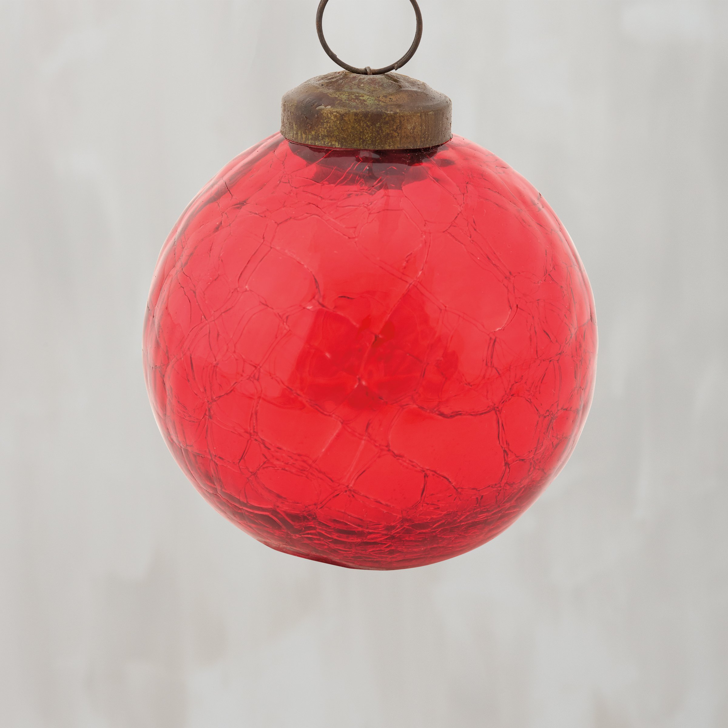 A small glass ornament from our Christmas Collection displaying a vintage Christmas ball design with a holiday red color and distressed details. Our small glass Red Ball ornament is ready to hang for display via the included top loop. A vintage seasonal home accent perfect for a Christmas tree or for gifting.