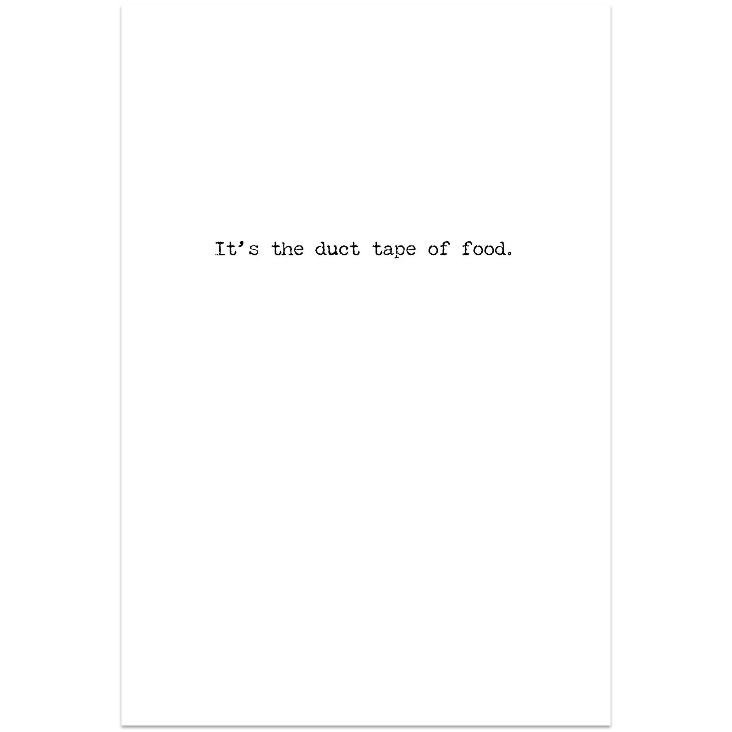 A humorous greeting card from our Trash Talk By Annie Collection displaying a vintage photograph with complementing sentiment. Card features "Bacon Is Wonderful. You Can Wrap It Around Everything." sentiment on the outside and "It's The Duct Tape Of Food" sentiment on the inside with space to add a personalized message. Our Bacon greeting card is a hilarious gifting option for everyday moments. Proudly made in the USA.