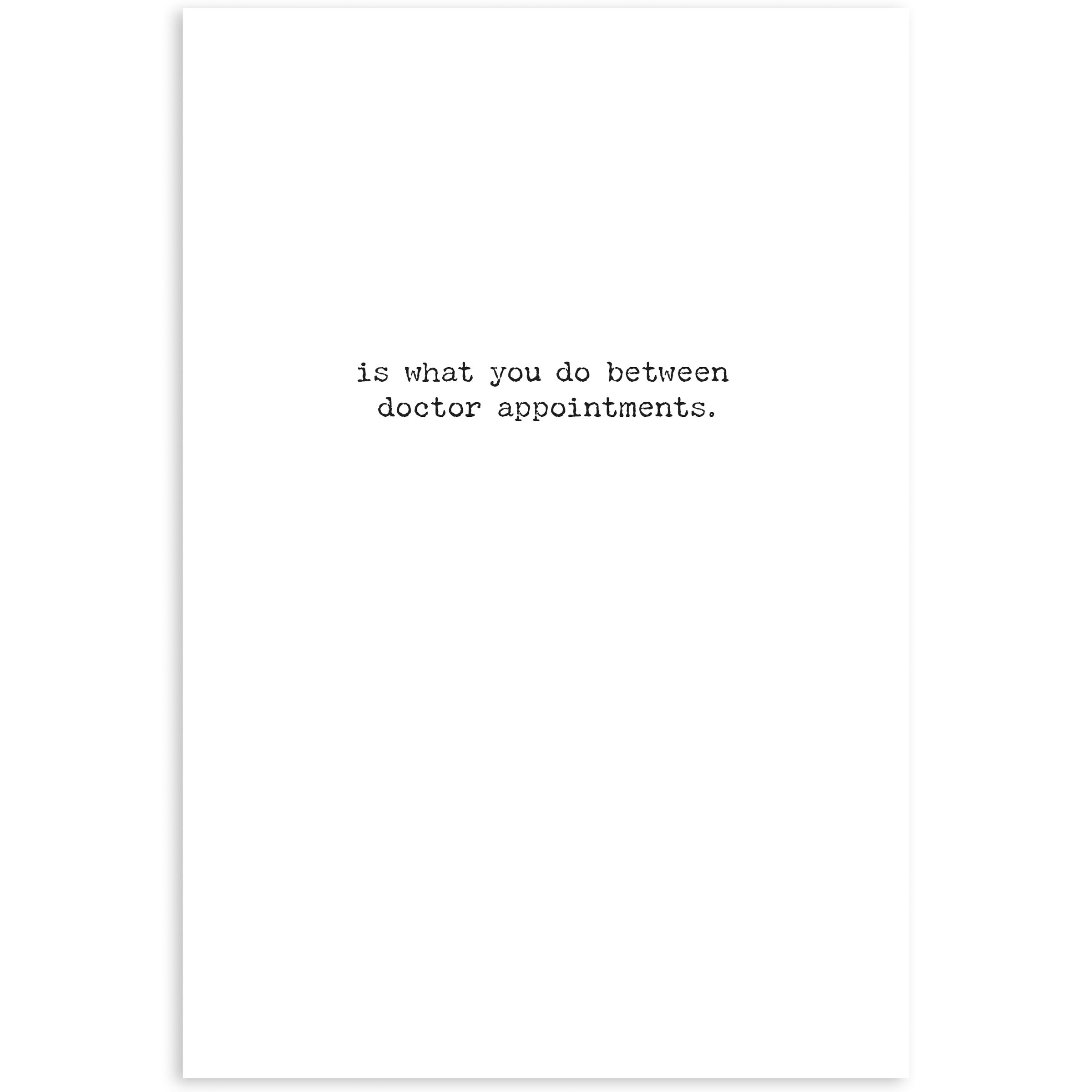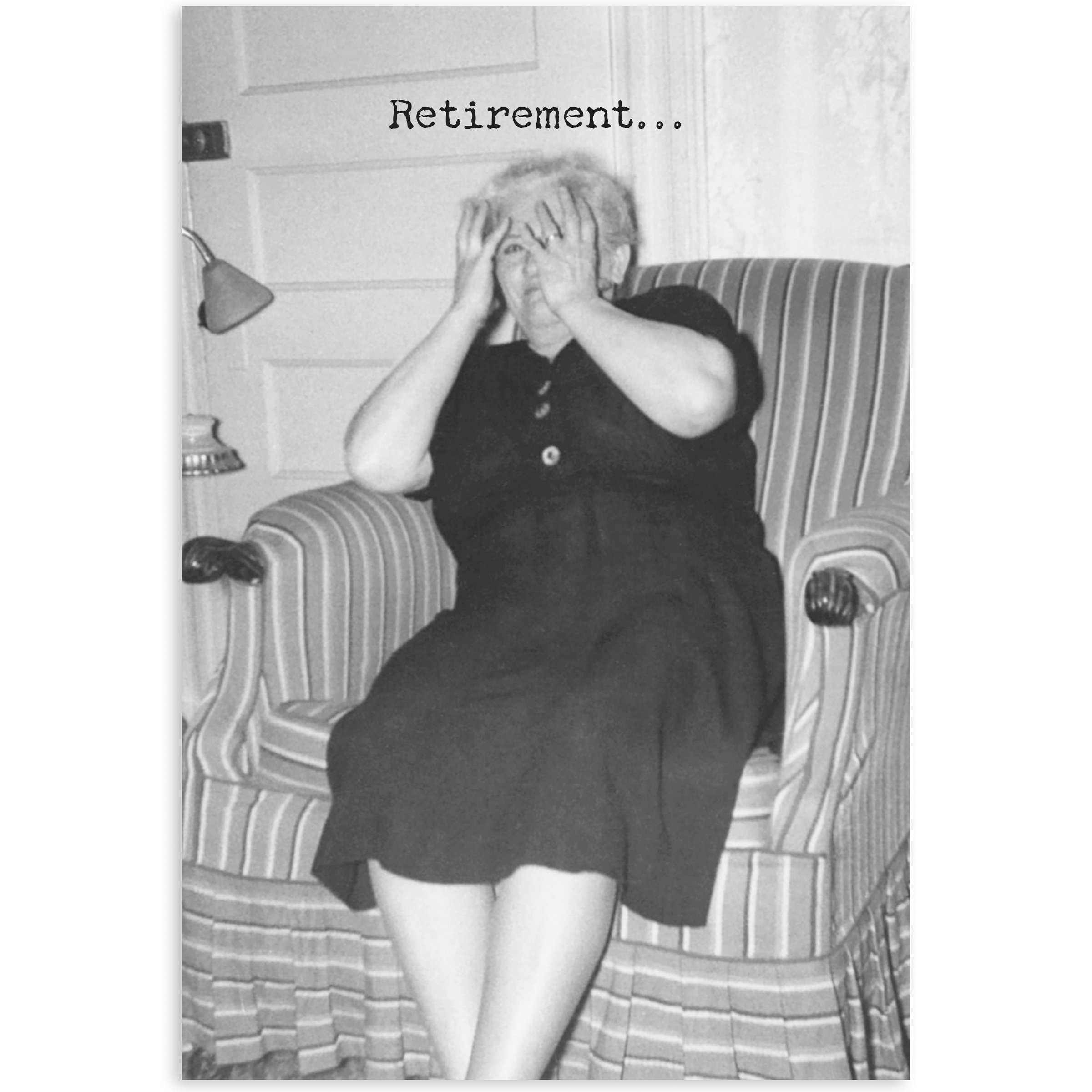 A greeting card from our Trash Talk By Annie Collection displaying a fun vintage black and white photograph complemented with a humorous retirement inspired sentiment. Greeting card features "Retirement..." sentiment on the outside and "Is What You Do Between Doctor Appointments." sentiment on the inside with space to add a personalized message. Our Doctor greeting card is a hilarious gifting option for everyday moments. Proudly made in the USA.