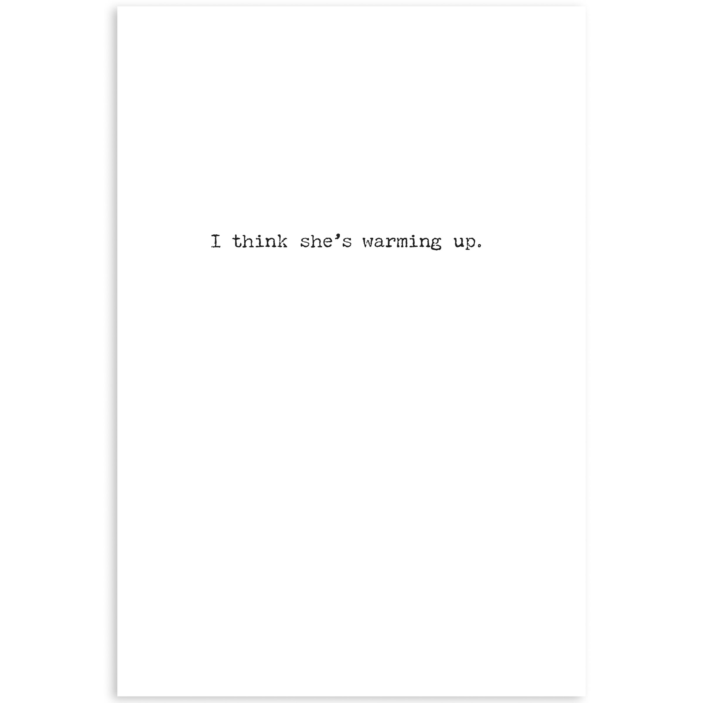 A greeting card from our Trash Talk By Annie Collection displaying a vintage black and white photograph complemented with a humorous age inspired sentiment. Greeting card features "They Say You're Not Old Until The Fat Lady Sings..." sentiment on the outside and "I Think She's Warming Up." sentiment on the inside with space to add a personalized message. Our Fat Lady Sings greeting card is a hilarious gifting option for birthdays or everyday moments. Proudly made in the USA.