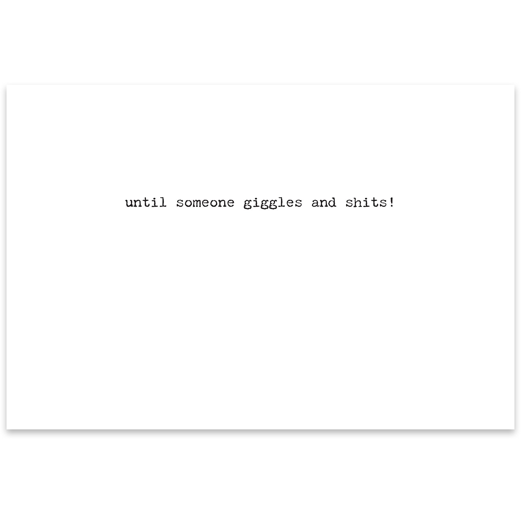 Made in the USA. Outside: It's all shits and giggles. Inside: Until someone giggles and shits!
