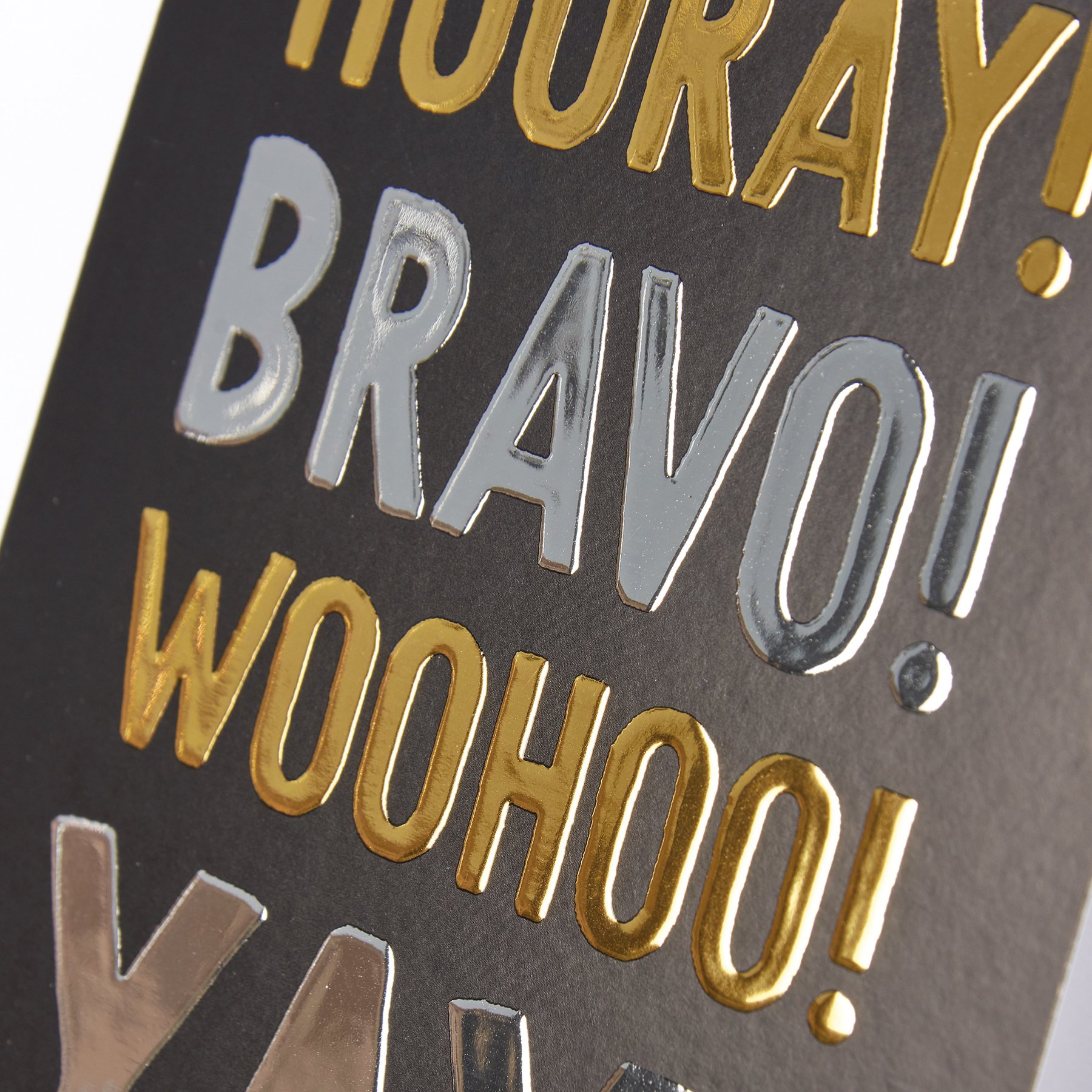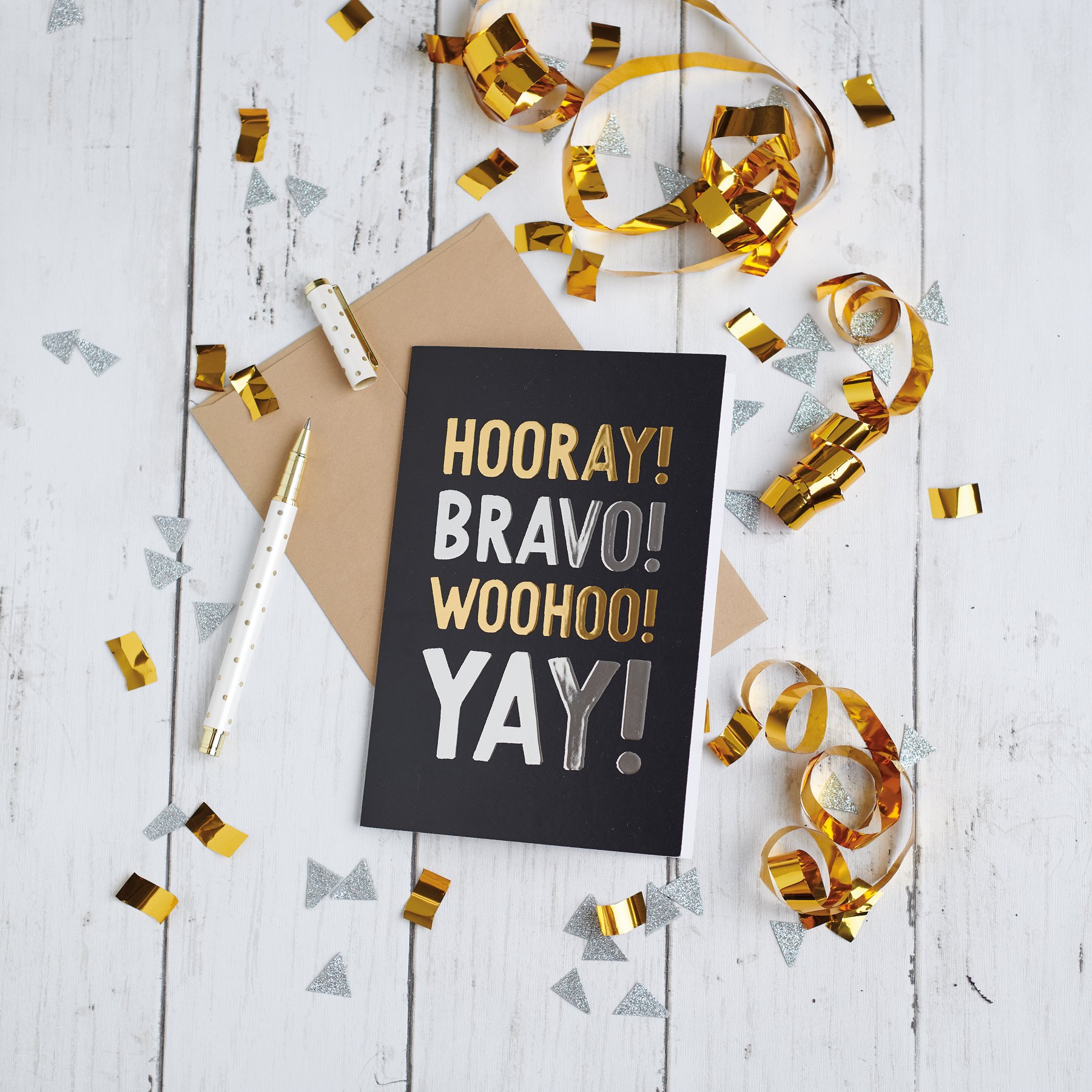 Product Text: HOORAY! BRAVO! WOOHOO! YAY!